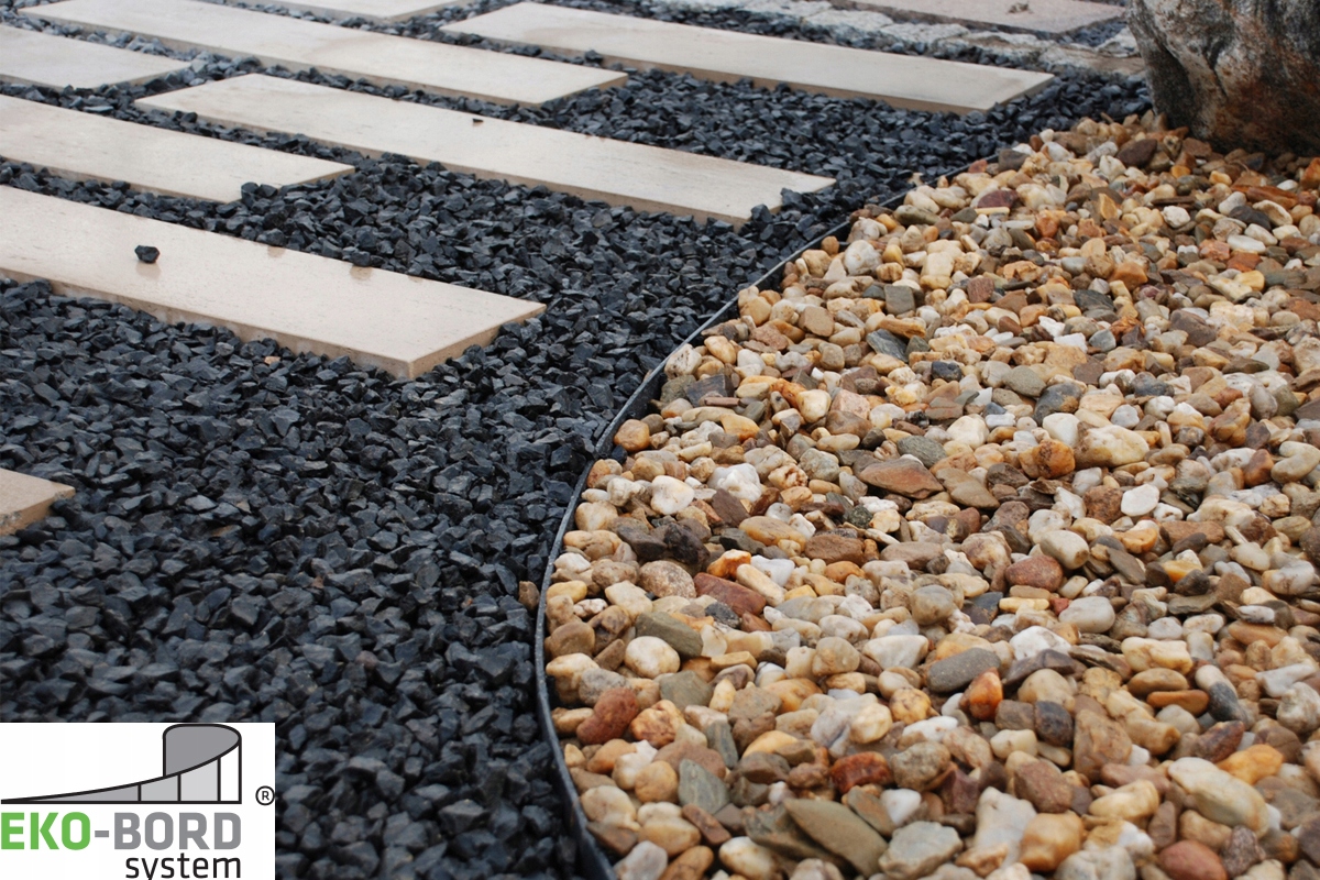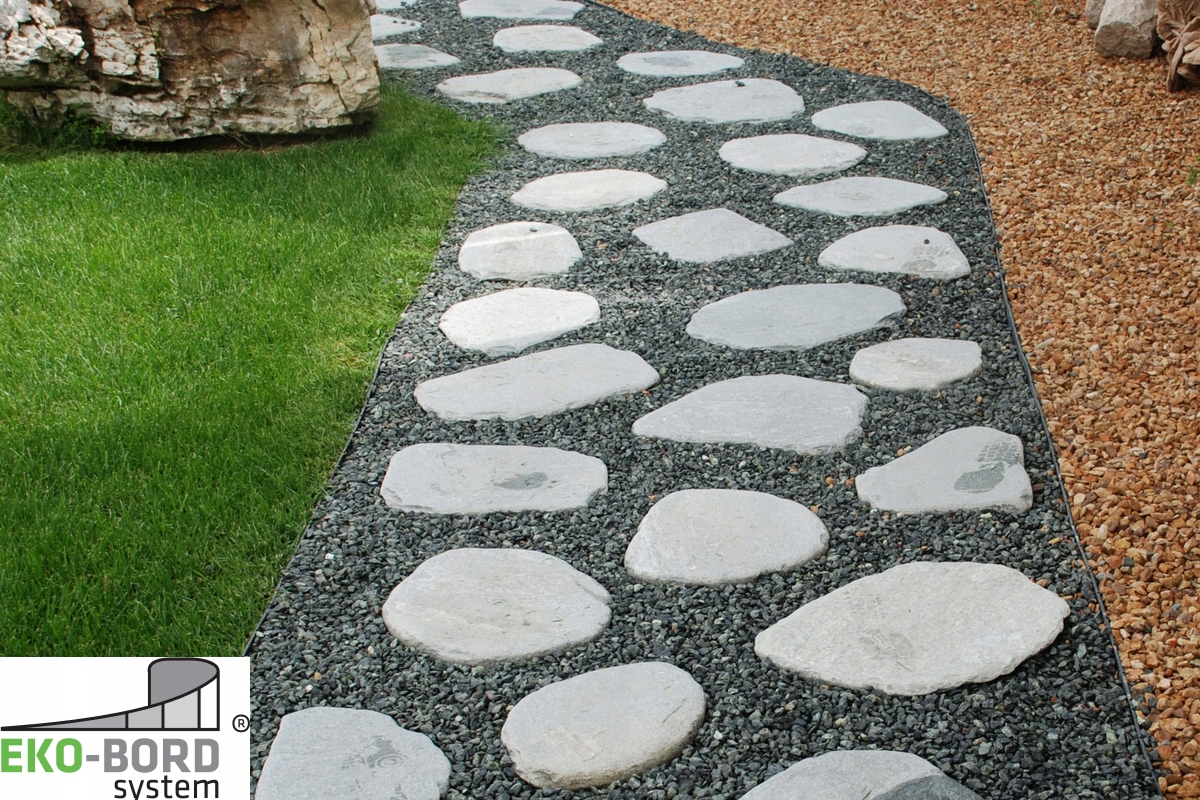 С помощью кромок ЭКО-БОРД можно также разметить и ограничить любую форму гравия или гравийных дорожек, например. для пешеходов или велосипедистов в парках и зеленых зонах, а также может с успехом использоваться для отделения газона от пашни.