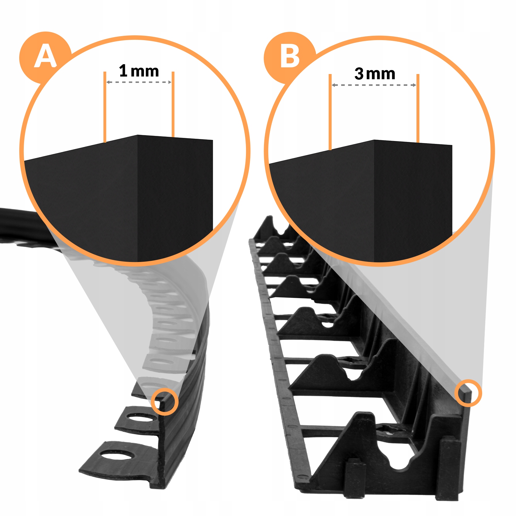 - Внизу (B) находится дешевая окантовка, которую можно приобрести на 95% аукционов, доступных на Allegro. Его стенки значительно тоньше, крючки ломаются и он деформируется в разные стороны.