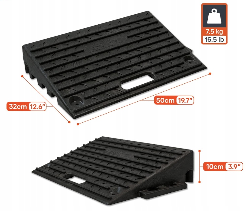 Эти пандусы были разработаны с учетом комфорта и эффективности. Благодаря прочной конструкции и соответствующему наклону они позволяют легко и безопасно переезжать бордюры или пороги без риска повреждения нижней части автомобиля.