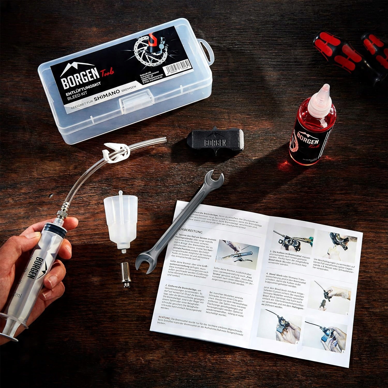 Комплект для прокачки Borgen Shimano для дисковых гидравлических тормозов, комплект для обслуживания дисковых тормозов, комплект для прокачки с пошаговыми инструкциями, включая гидравлическое масло для дисковых тормозов