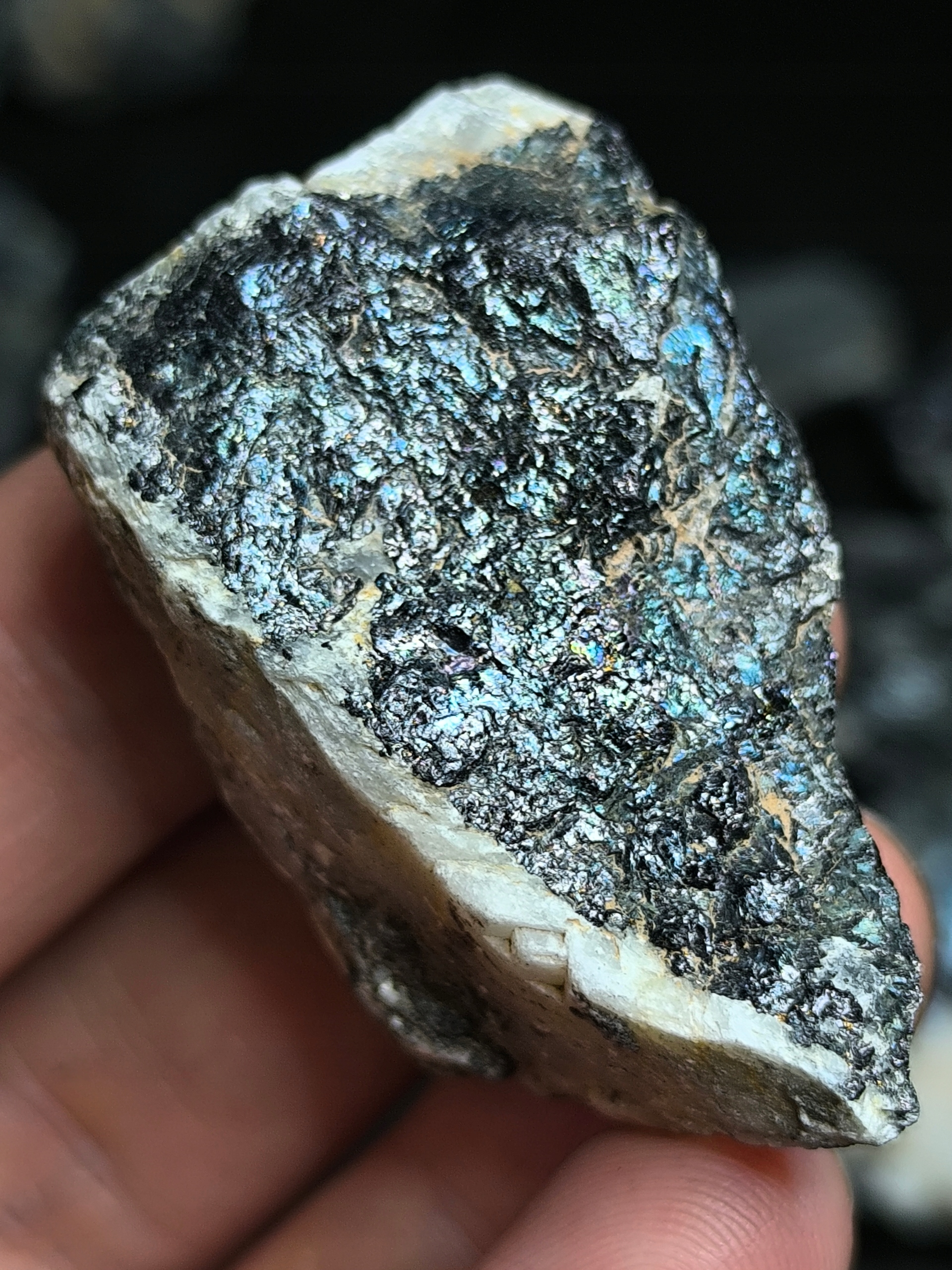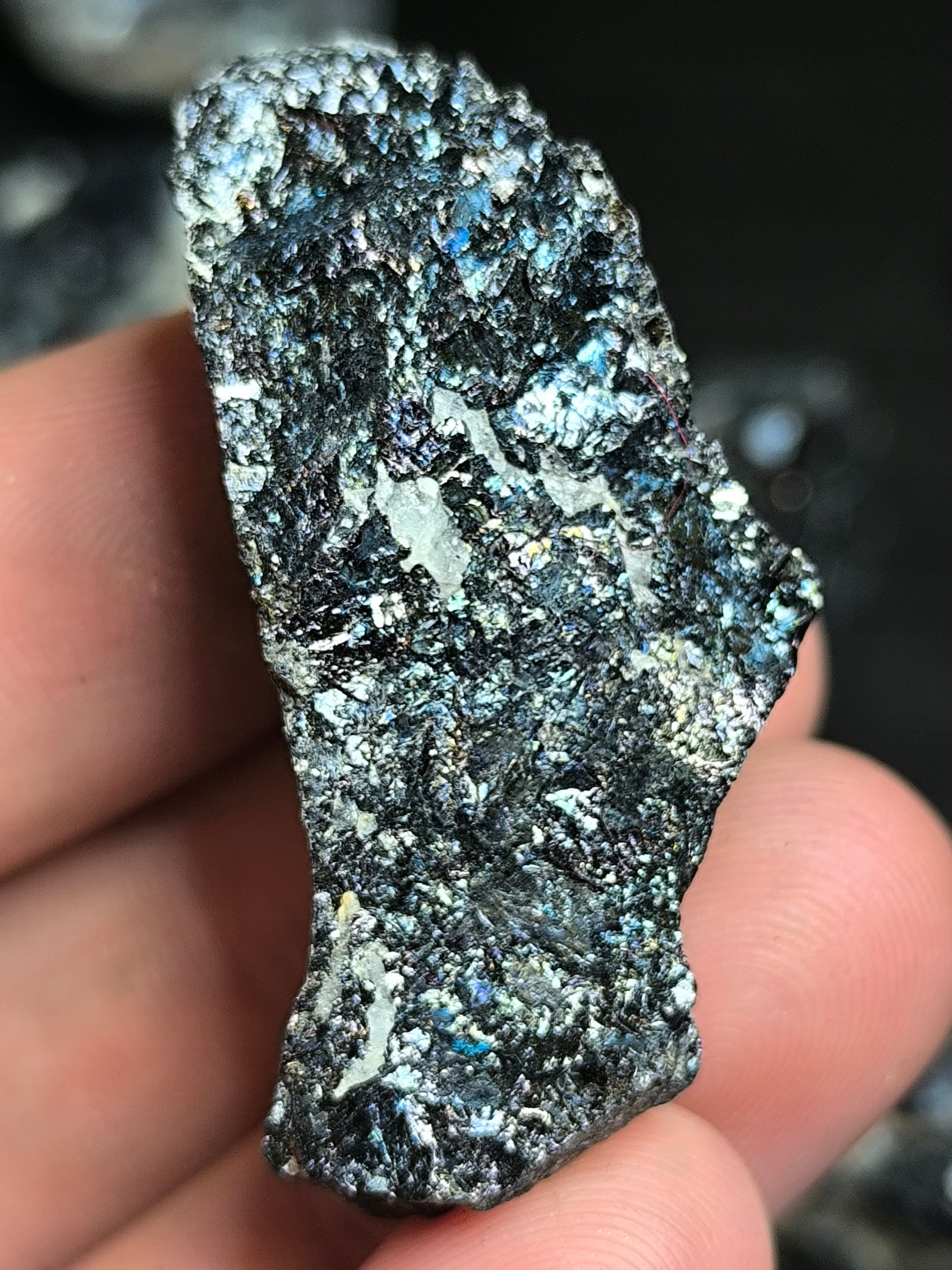 Свежий борнит имеет темно-серый/медный металлический цвет. Естественный блеск создается в результате окисления его поверхности - каждый экземпляр уникален.