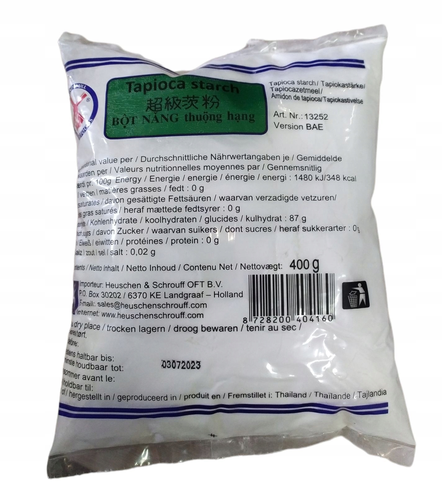 Оплачивая «Борошно з тапіоки WINDMIL 400г», вы можете быть уверены, что данный товар из каталога «Кухни мира» будет доставлен из Польши и проверен на целостность. В цене товара, указанной на сайте, учтена доставка из Польши. Внимание!!! Товары для Евросоюза, согласно законодательству стран Евросоюза, могут отличаться упаковкой или наполнением.