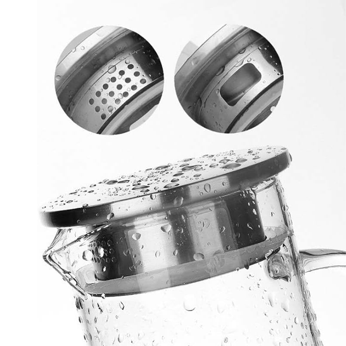 - ✔️Предназначен для домашних напитков: этот стеклянный кувшин оснащен двусторонней крышкой из нержавеющей стали 18/8, которую можно отрегулировать по своему вкусу, что позволяет легко хранить мякоть и кубики льда или быстро разливать напитки. Носик с защитой от капель и эргономичная ручка облегчают наливание, а безопасный для пищевых продуктов силикон вокруг крышки плотно прилегает к корпусу кувшина, предотвращая проливание жидкости на прилавок.