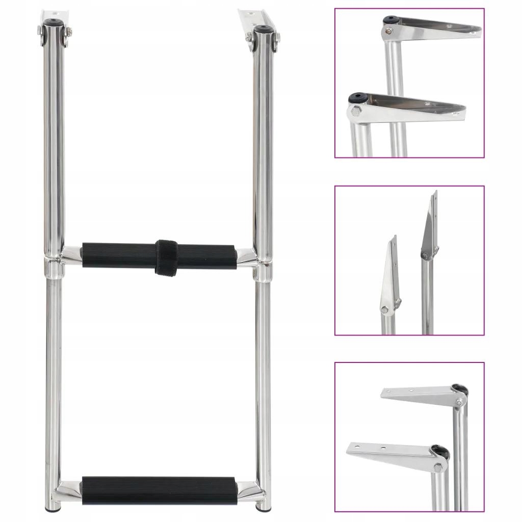 VidaXL Палубна драбина з 2 сходинками, складна, нержавіюча сталь