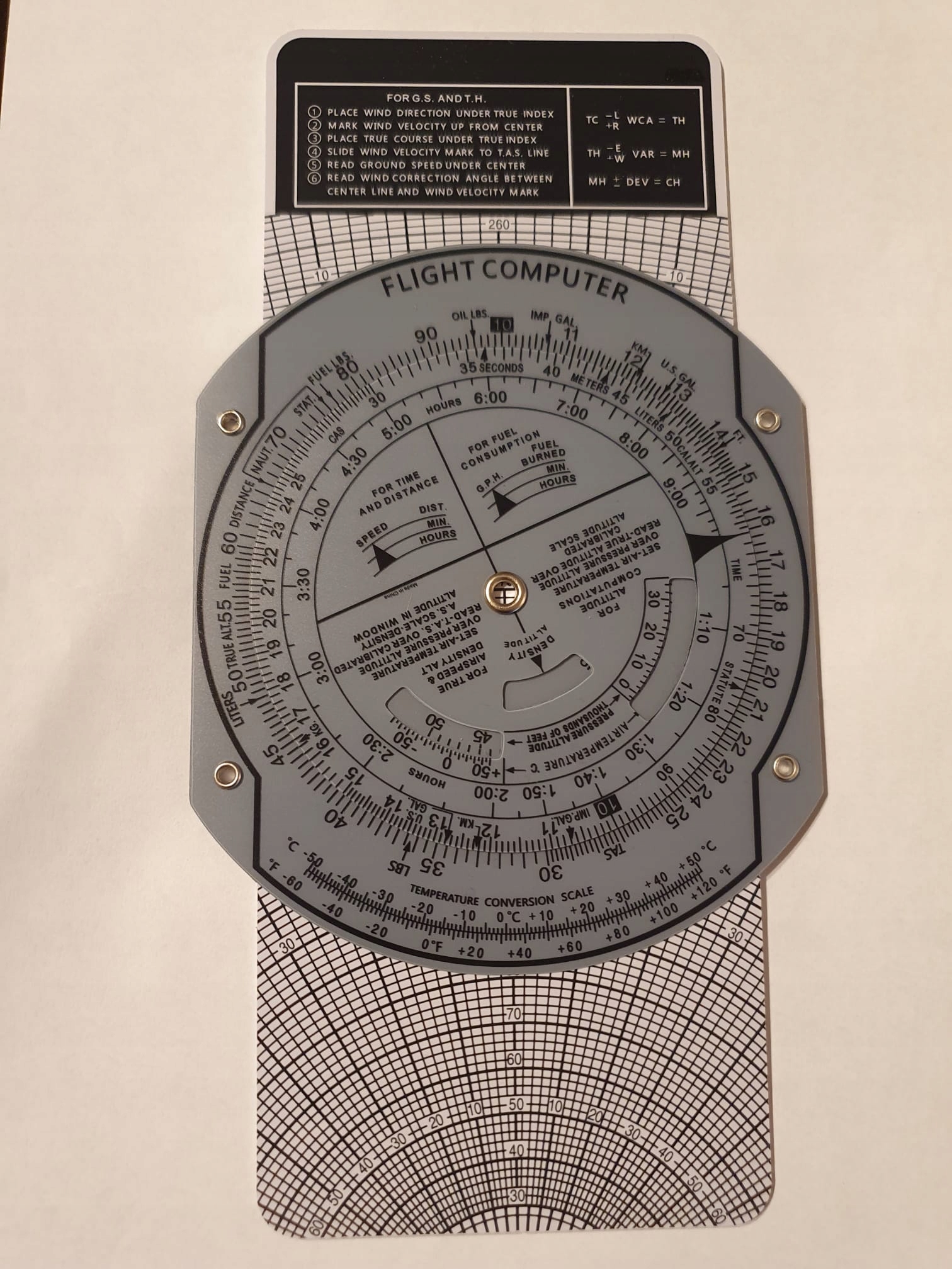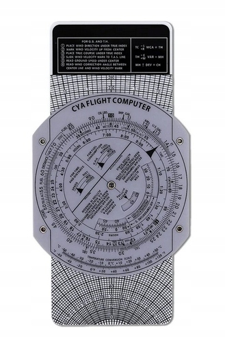 В воздухе бортовой компьютер можно использовать для расчета путевой скорости, примерного расхода топлива и обновленного расчетного времени прибытия. Задняя часть устройства используется для определения векторов ветра, т. е. определения того, насколько ветер влияет на скорость и курс. Их часто называют «викторинными колесами».