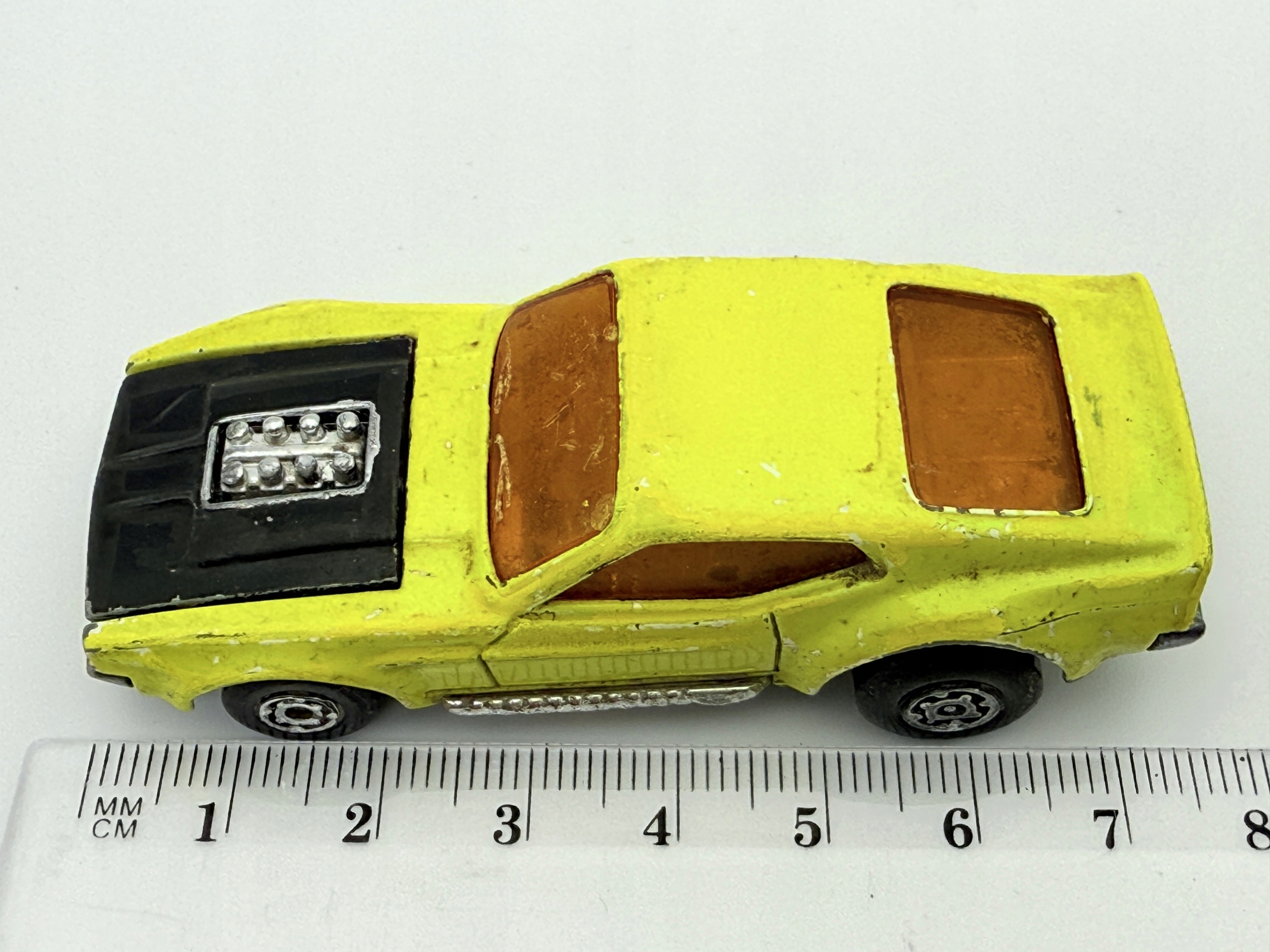 Модель основана на классическом Ford Mustang Boss 302. Цветные мотивы желтые с черной маской, которая относится к гоночным цветам. Не принадлежит к какой -либо конкретной тематической серии, но представляет стиль 70 -х годов