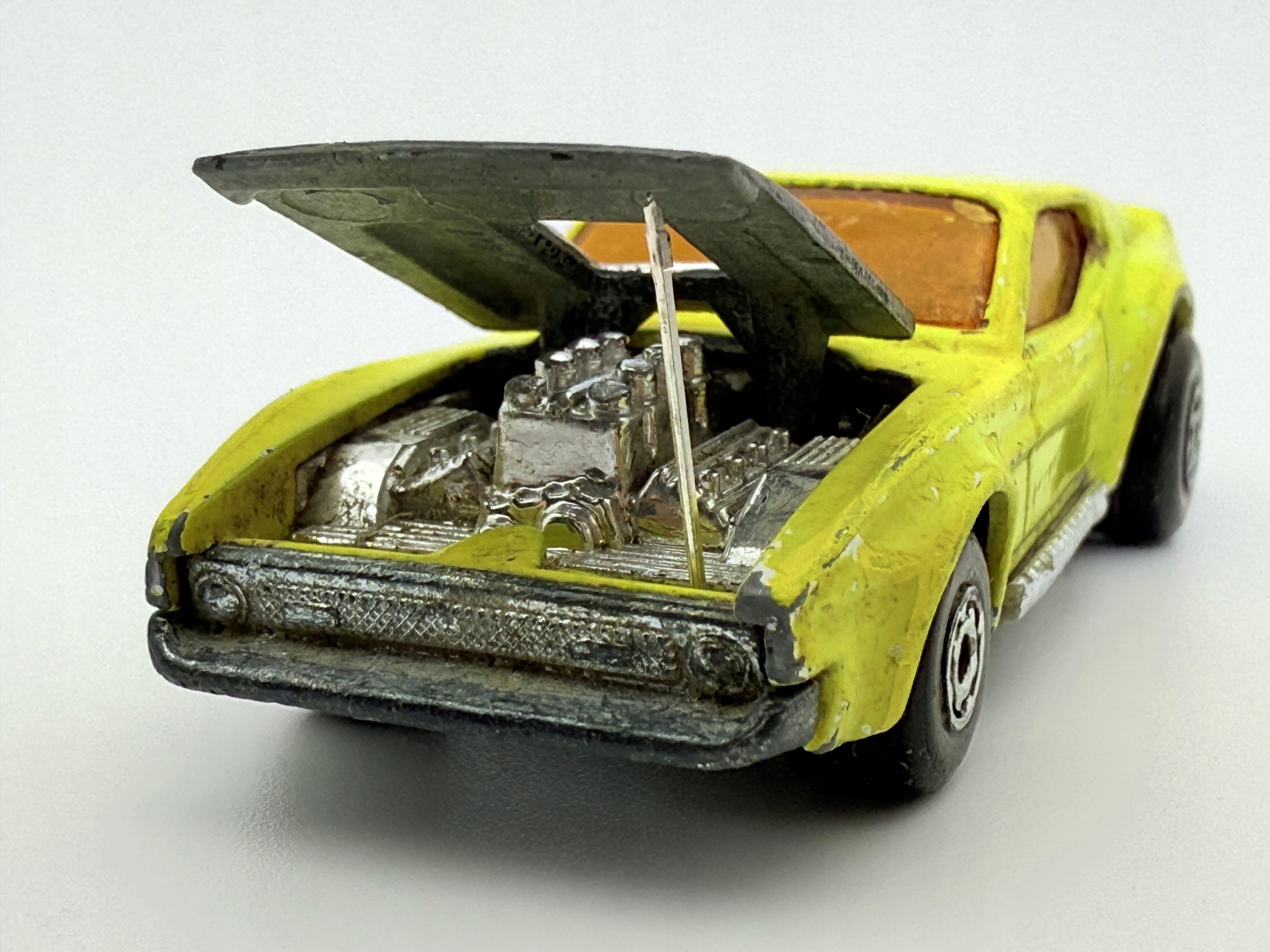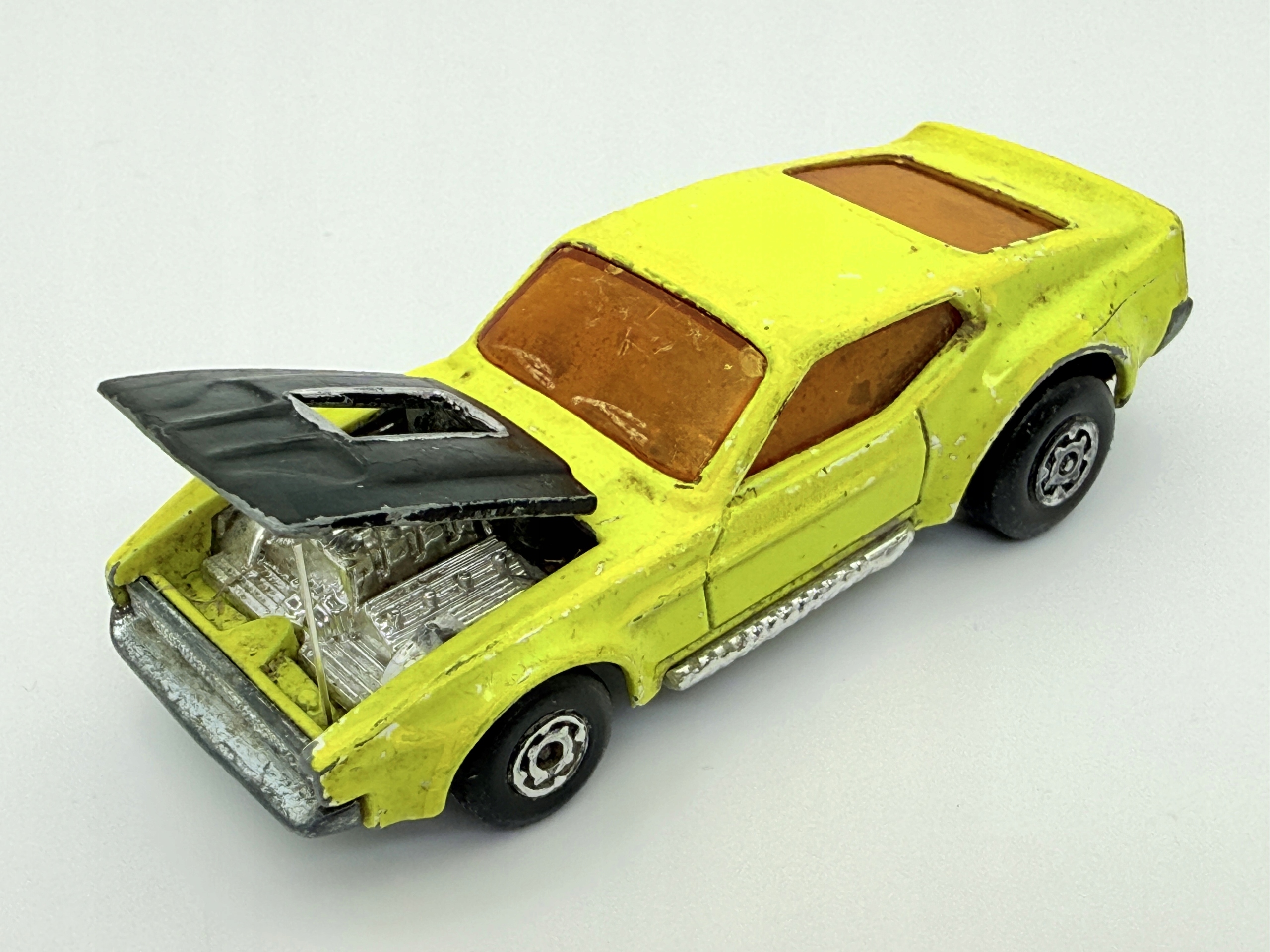 Эта весна представляет собой классический босс Matchbox Mustang, который привлекает внимание его желтым цветом и открывающейся маской.