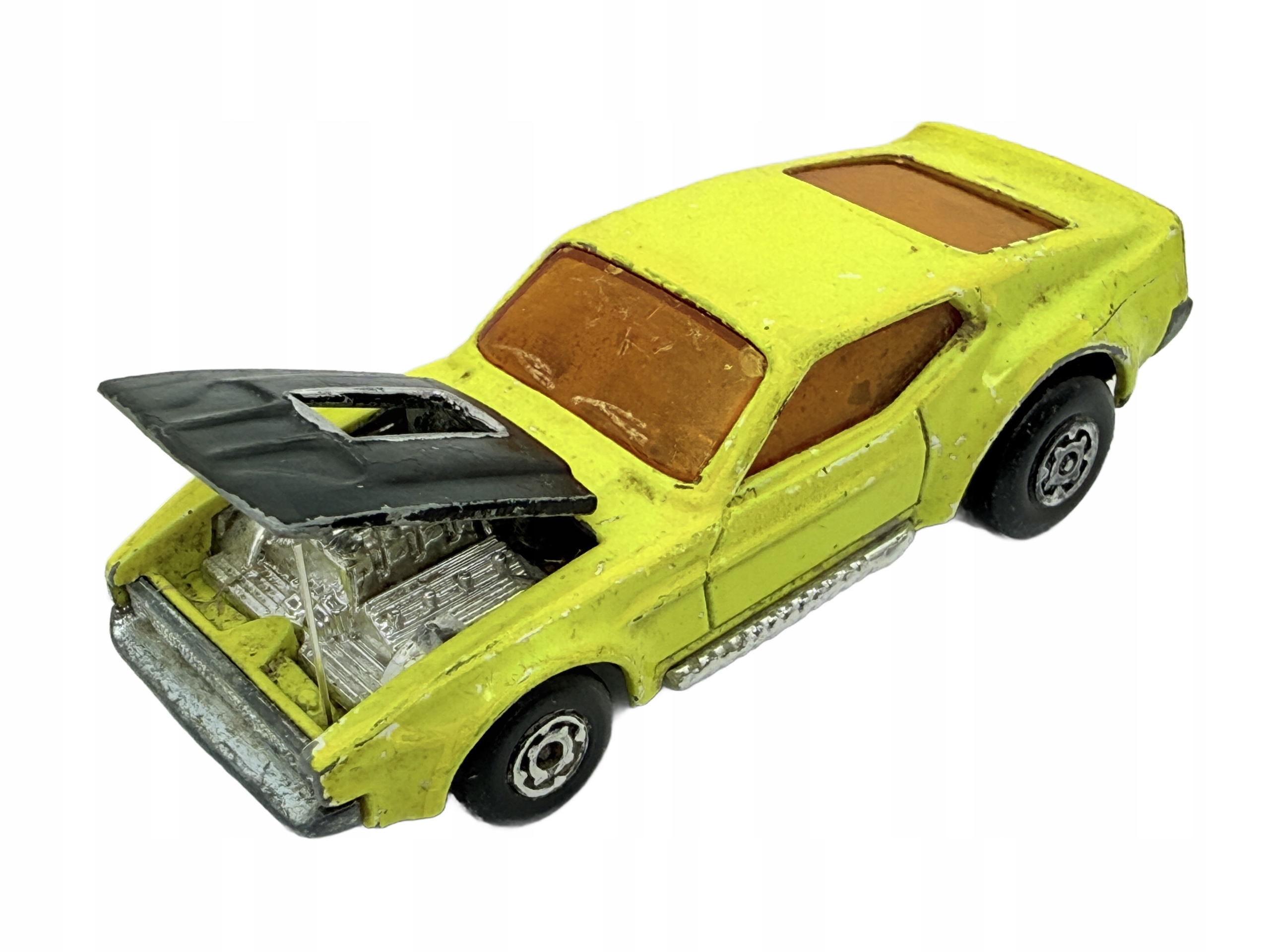 Ресорейский босс Mustang из Matchbox - настоящий жемчужина для коллекционеров. Изготовленный из металла, он характеризуется прочной конструкцией и подробным воспроизведением классического американского мускулистого автомобиля. Желтое тело с характерной черной маской добавляет к нему динамику, и открывающаяся маска раскрывает детальную модель двигателя, которая, безусловно, будет восхищать каждому любовнику деталей. Несмотря на видимые признаки использования, эта модель все еще выглядит очень хорошо, что делает ее привлекательным дополнением к каждой коллекции. Благодаря своему уникальному дизайну и истории, этой весной - не только игрушка, но и часть автомобильной истории в миниатюре.