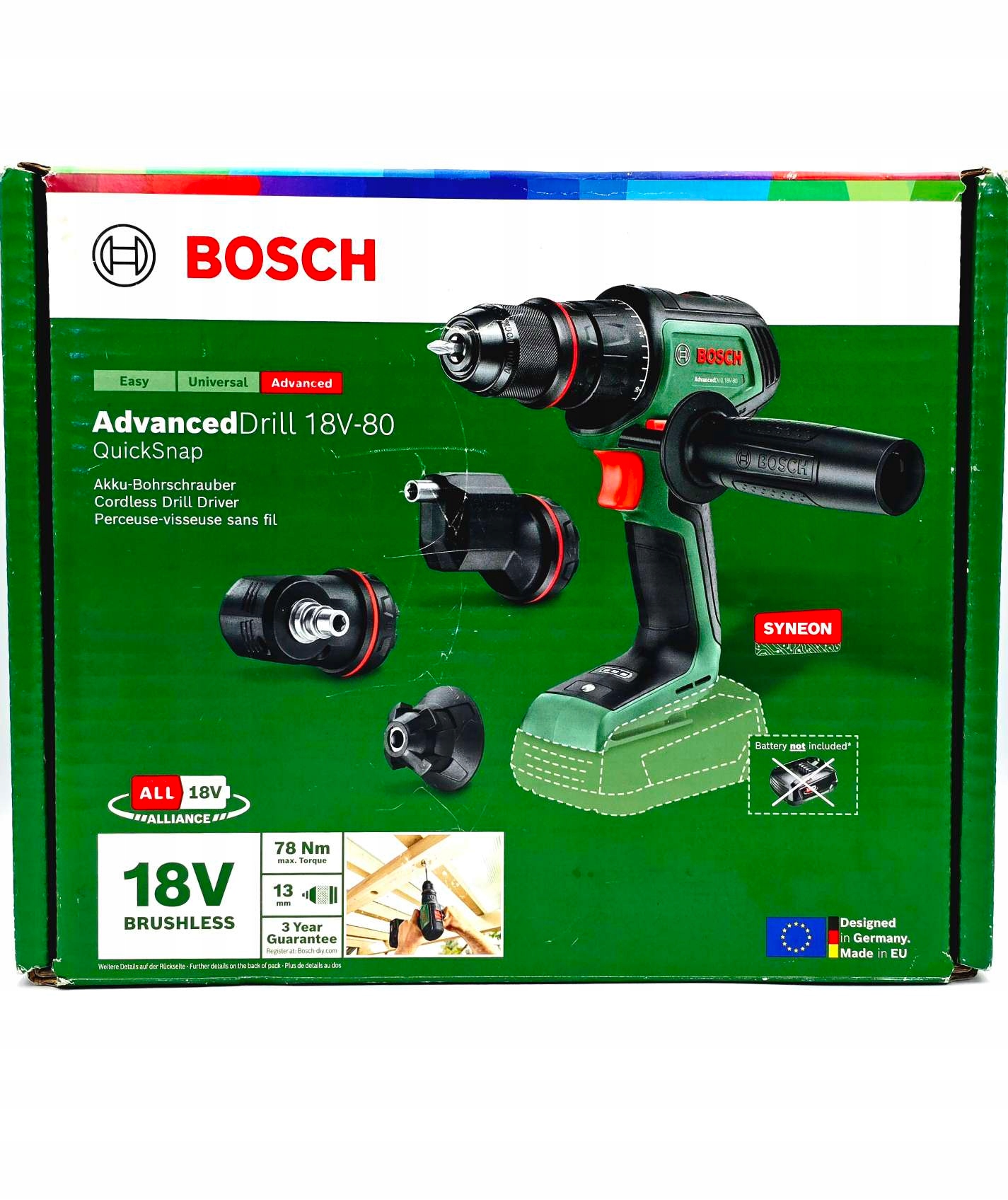 Интерфейс Quicksnap, так что вы можете установить угловой адаптер на 90 °, чтобы прикрутить и просверлить в трудных местах, чтобы добраться до места, или адаптер для прикручивания рядом с краем, чтобы легче работать в углах и на краю материала. Дополнительная ручка обеспечивает лучший контроль и стабильность, что означает комфорт и меньшую усталость. Встроенная технология Bosch Syneon Technology обеспечивает оптимальную мощность и максимальное рабочее время.