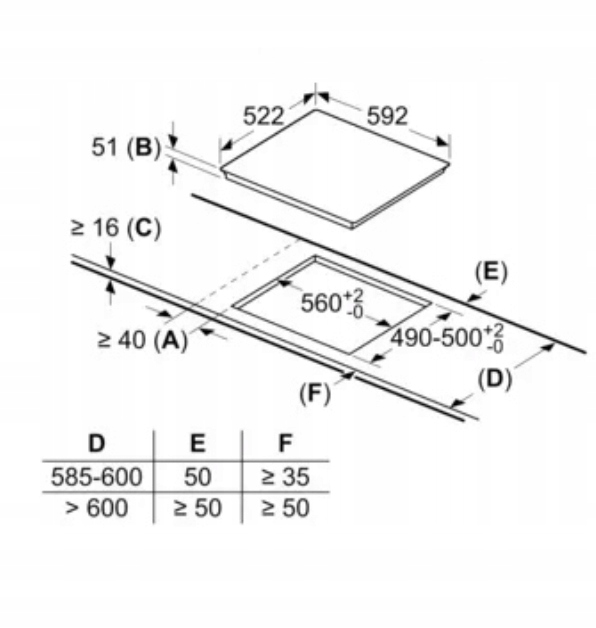 - Обязательные измерения сборки (WXSXG MM): 51 x 560 x (490 - 490 - 490 - 490 - 490 - 490 - 490. Worktop: 16 мм