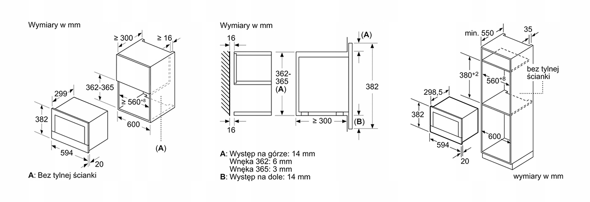 - Размеры ниши (ВхШхГ): 362 мм - 382 мм х 560 мм - 568 мм х 300 мм