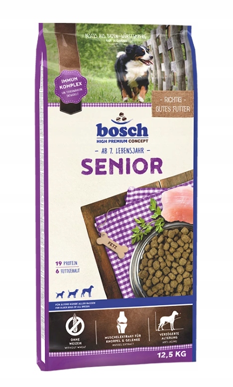 Bosch Senior специально разработан для пожилых собак, которым необходим сбалансированный и качественный рацион. Этот продукт Bosch содержит идеальные пропорции питательных веществ, которые помогают поддерживать здоровье и физическую форму пожилого питомца.
