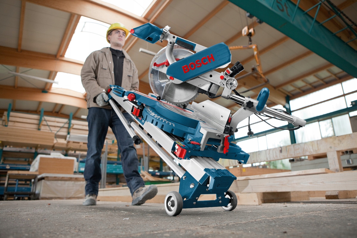 Благодаря комплекту колес BOSCH нет необходимости снимать торцовочную пилу со стола каждый раз, когда вы захотите перевезти комплект в другое место. Просто сложите ножки стола, и набор готов к транспортировке на колесах.