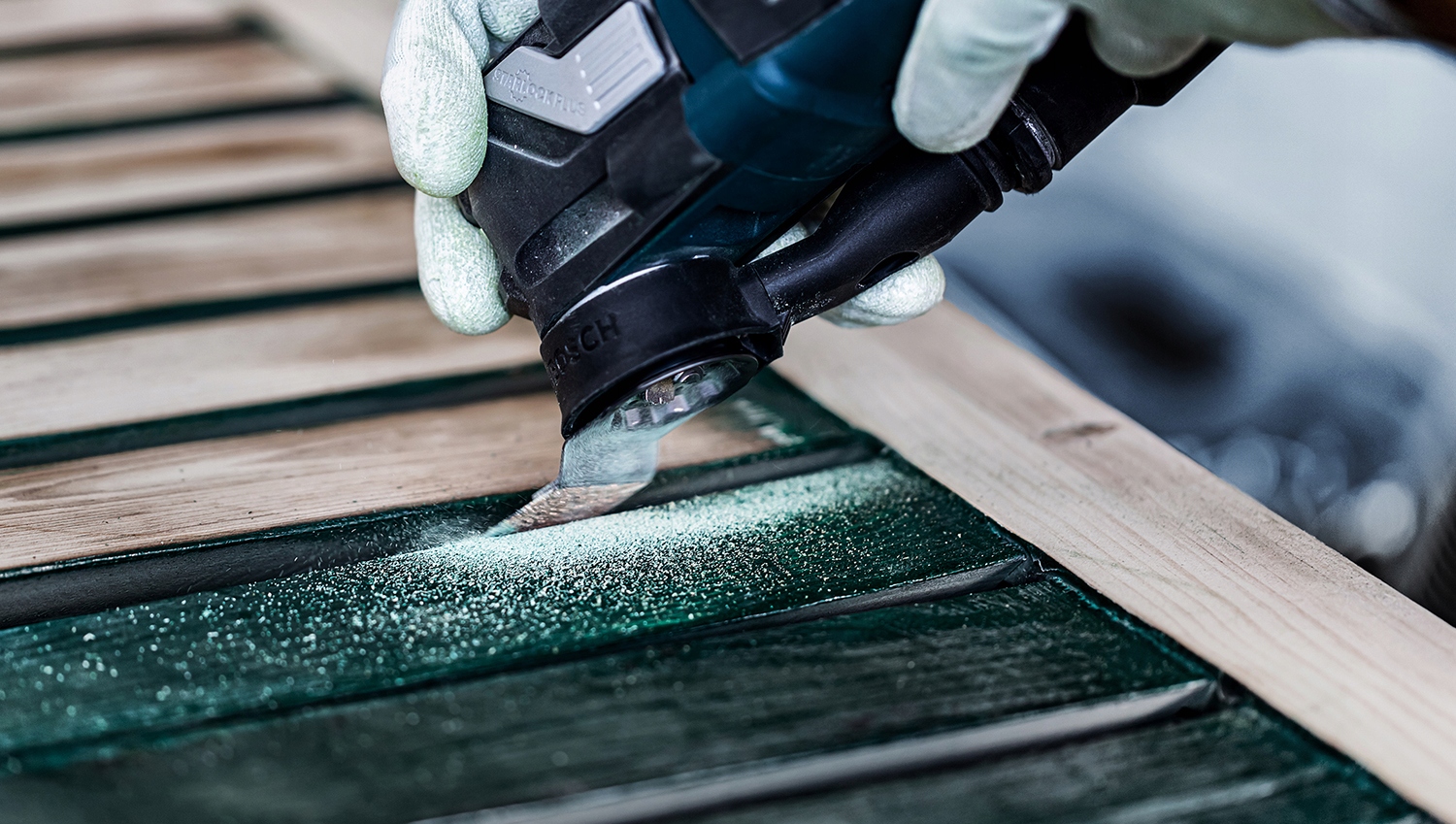 - Шлифует самые узкие щели с помощью исключительно тонкого лезвия. Идеально подходит для доступа между половицами, молдингами и другими труднодоступными поверхностями.