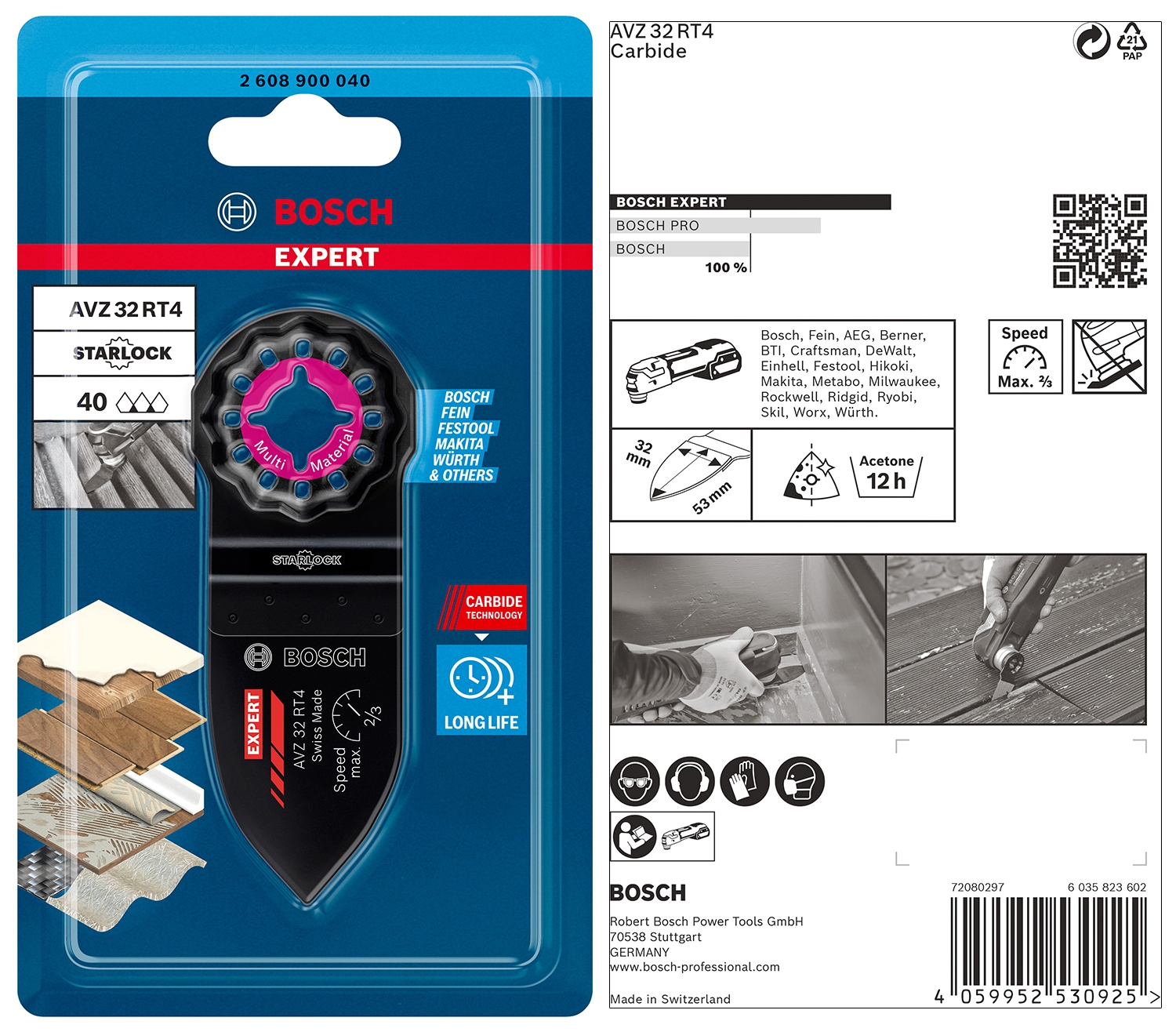 - Исключительная долговечность — ключевая особенность аксессуаров, изготовленных по технологии Bosch Carbide. Высококачественное твердосплавное зерно обладает исключительной остротой, что обеспечивает наилучшие результаты и долговечность.