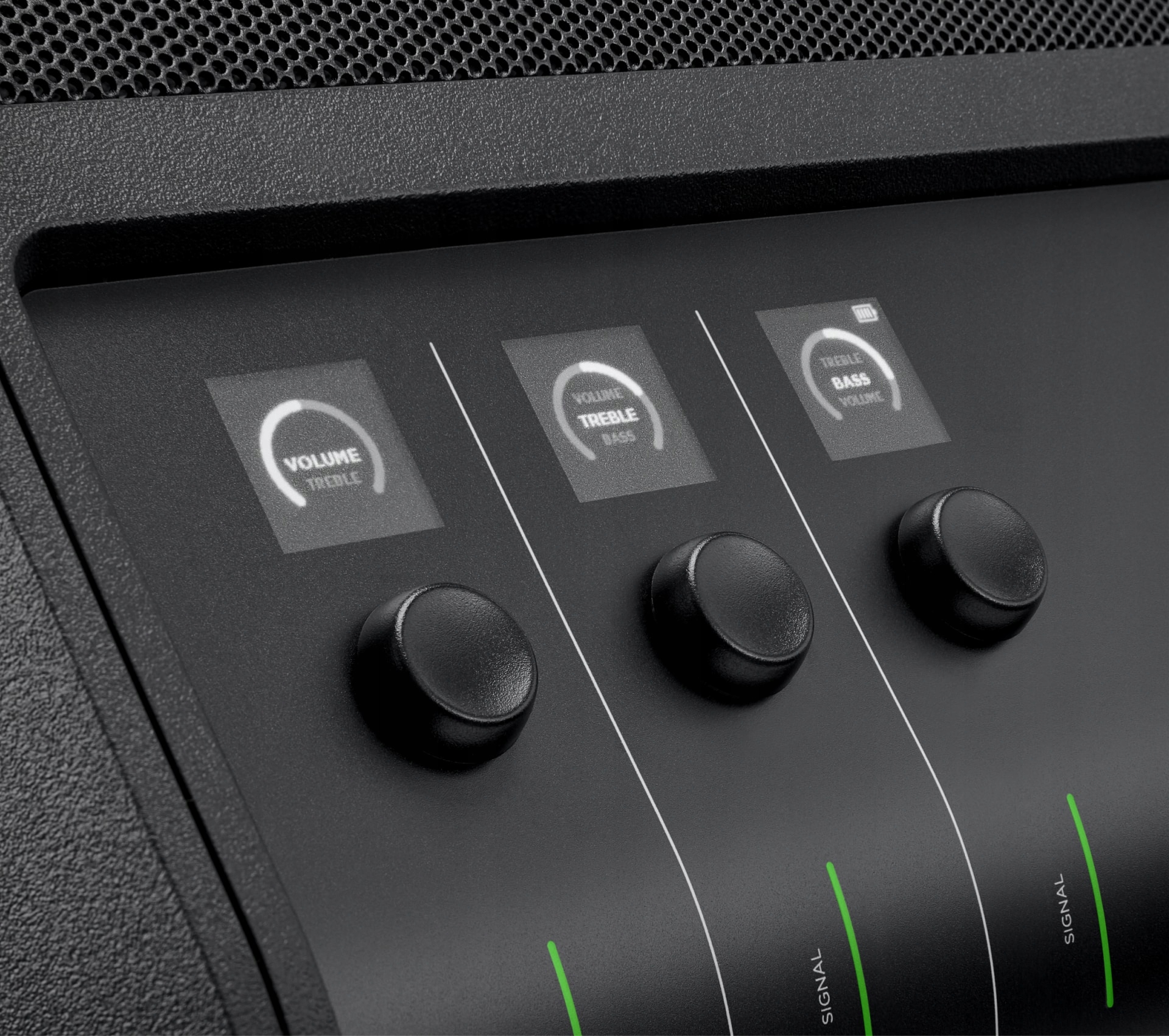 Переключайте громкость, высокие и низкие частоты для каждого канала и получайте доступ к настройкам ToneMatch и реверберации для каналов 1 и 2. Меняйте настройки и автоматически поворачивайте OLED-дисплеи.