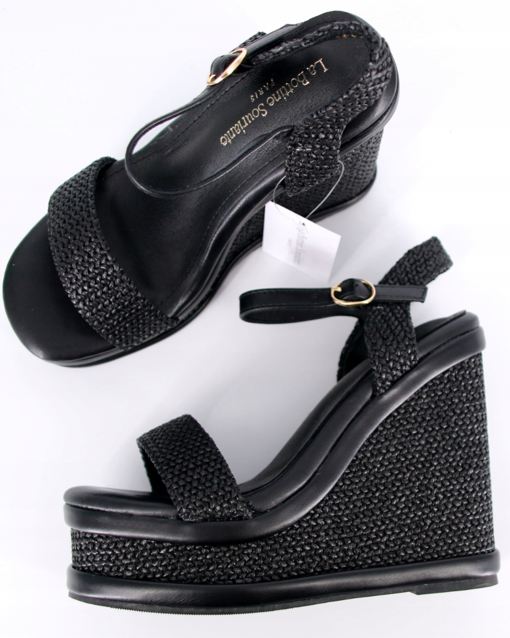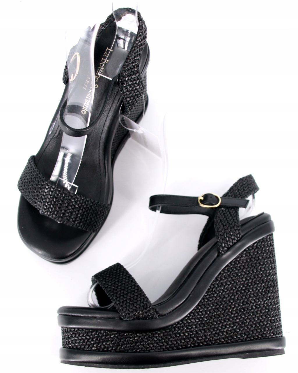 Сандалии на клине 13,5 см Эспадриллы Женская летняя обувь черная платформа