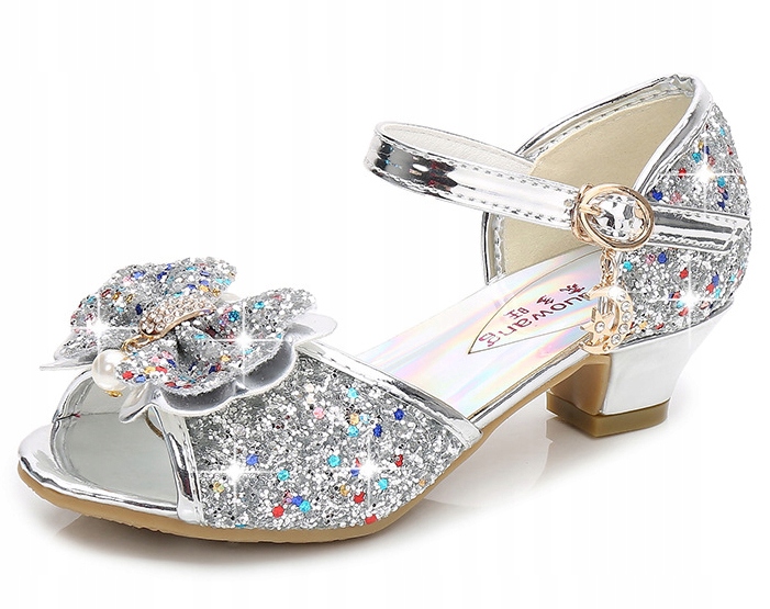 САНДАЛИИ ТУФЛИ НА КАБЛУКЕ ДЛЯ ПРИНЦЕССЫ Серебристый размер 29