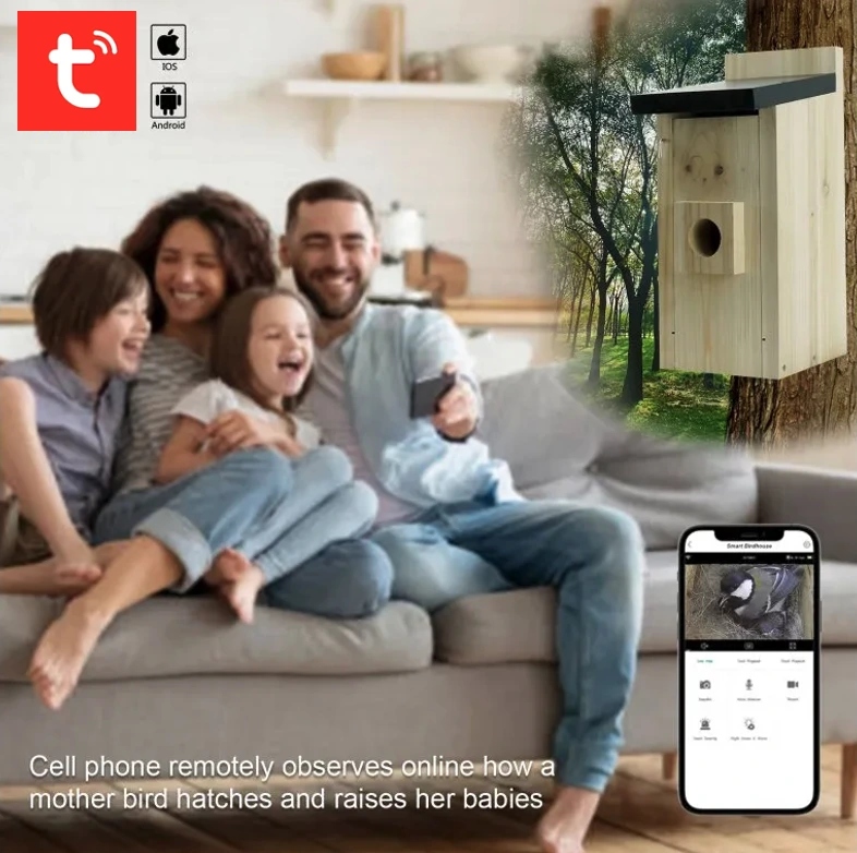 Коробка оснащена живым представлением, записи и галереей. Вы можете следить за птицами в режиме реального времени, записывать их активность, воспроизводить записи и сохранить свои любимые моменты в галерее. Благодаря мобильному приложению Tuya Smart, которое совместимо с операционными системами Android и iOS, все элементы управления буквально под рукой. Приложение также уведомит вас о обнаружении движения, поэтому вы будете немедленно уведомлены, когда что -то не так.