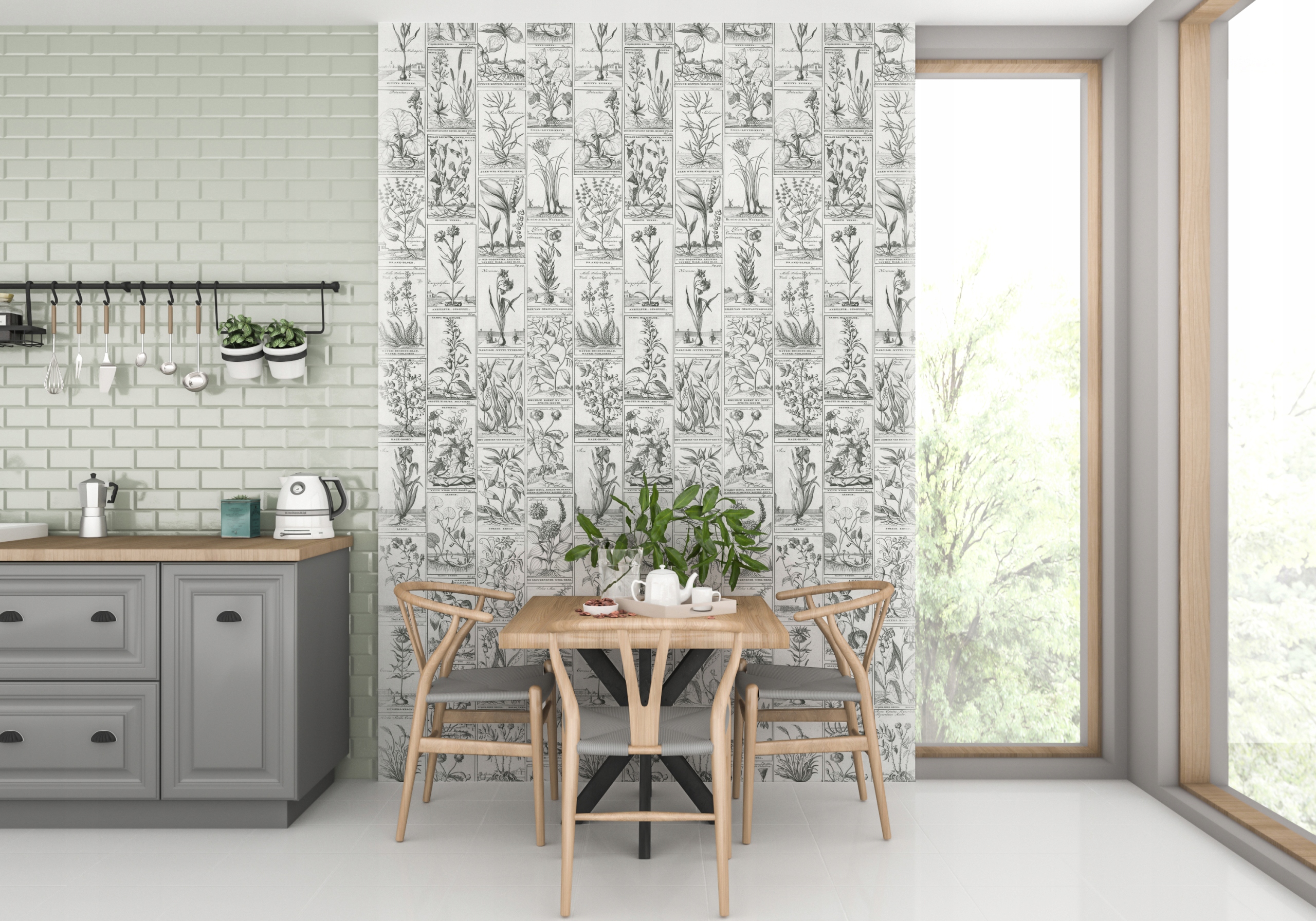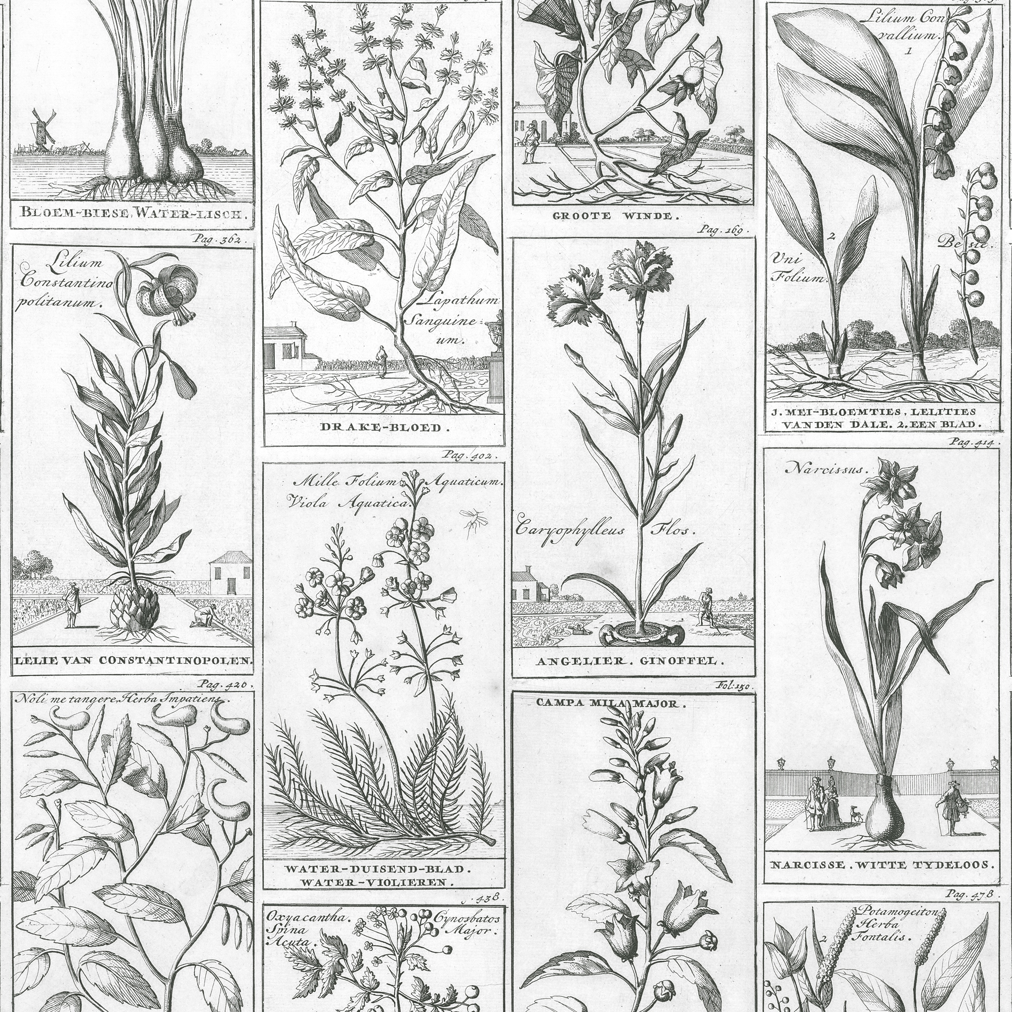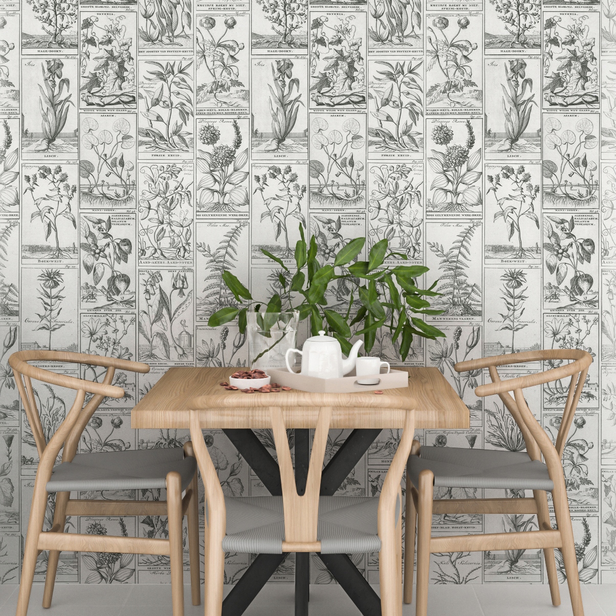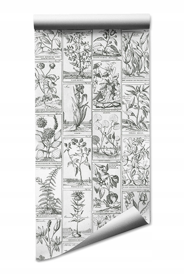 БОТАНИЧЕСКИЕ ОБОИ РАСТЕНИЯ ЧЕРНО-БЕЛЫЕ СТАРАЯ КНИГА ВИНТАЖНЫЙ ЛУГ
