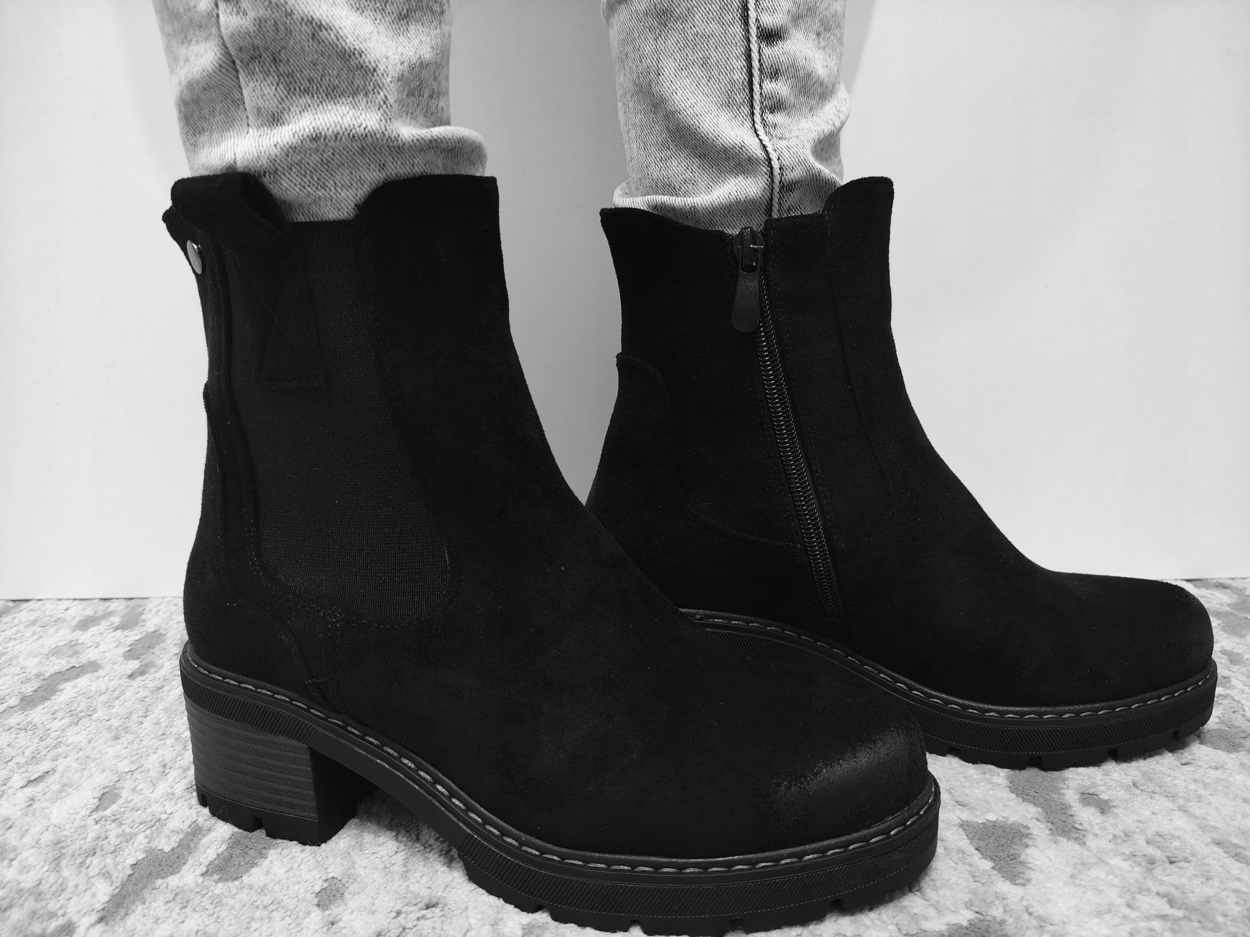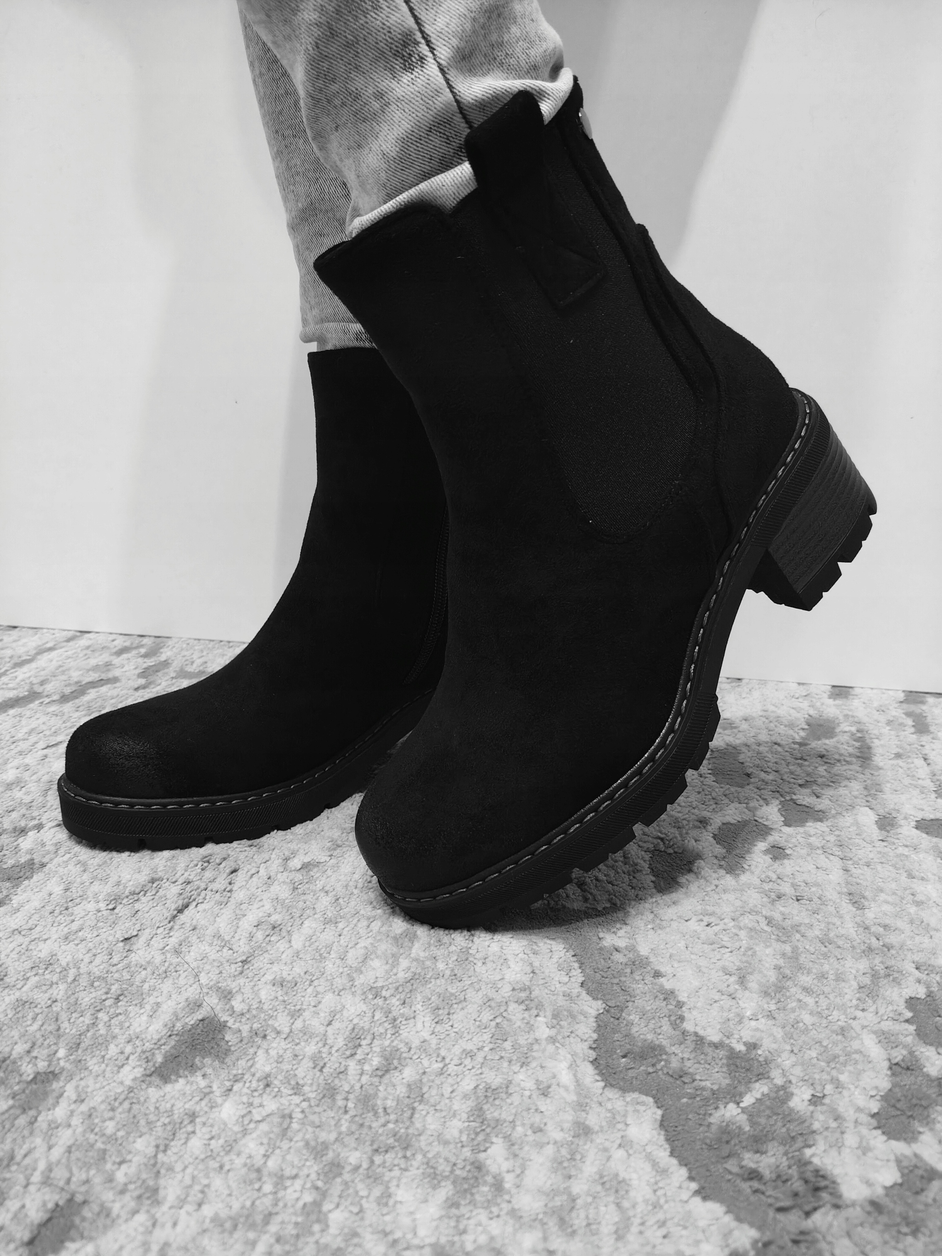БОТИНКИ ЖЕНСКИЕ ЗАМШЕВЫЕ УТЕПЛЕННЫЕ, ЧЕРНЫЕ R39