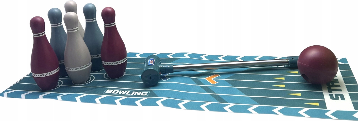 - В набор входят 6 кеглей, коврик, шар и молоток