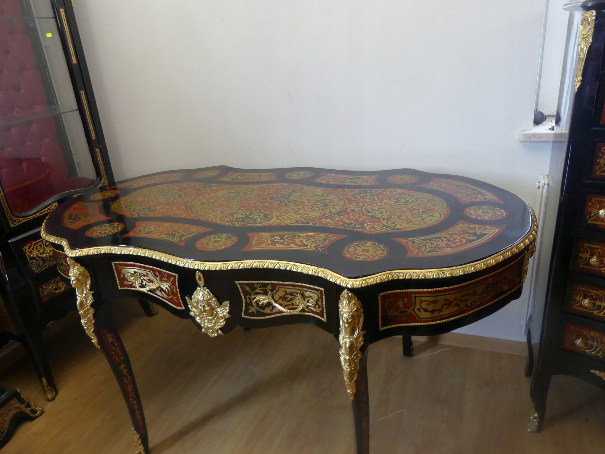 BOULLE - Ретро стіл в стилі бароко з латунною інкрустацією 150 х 80 см