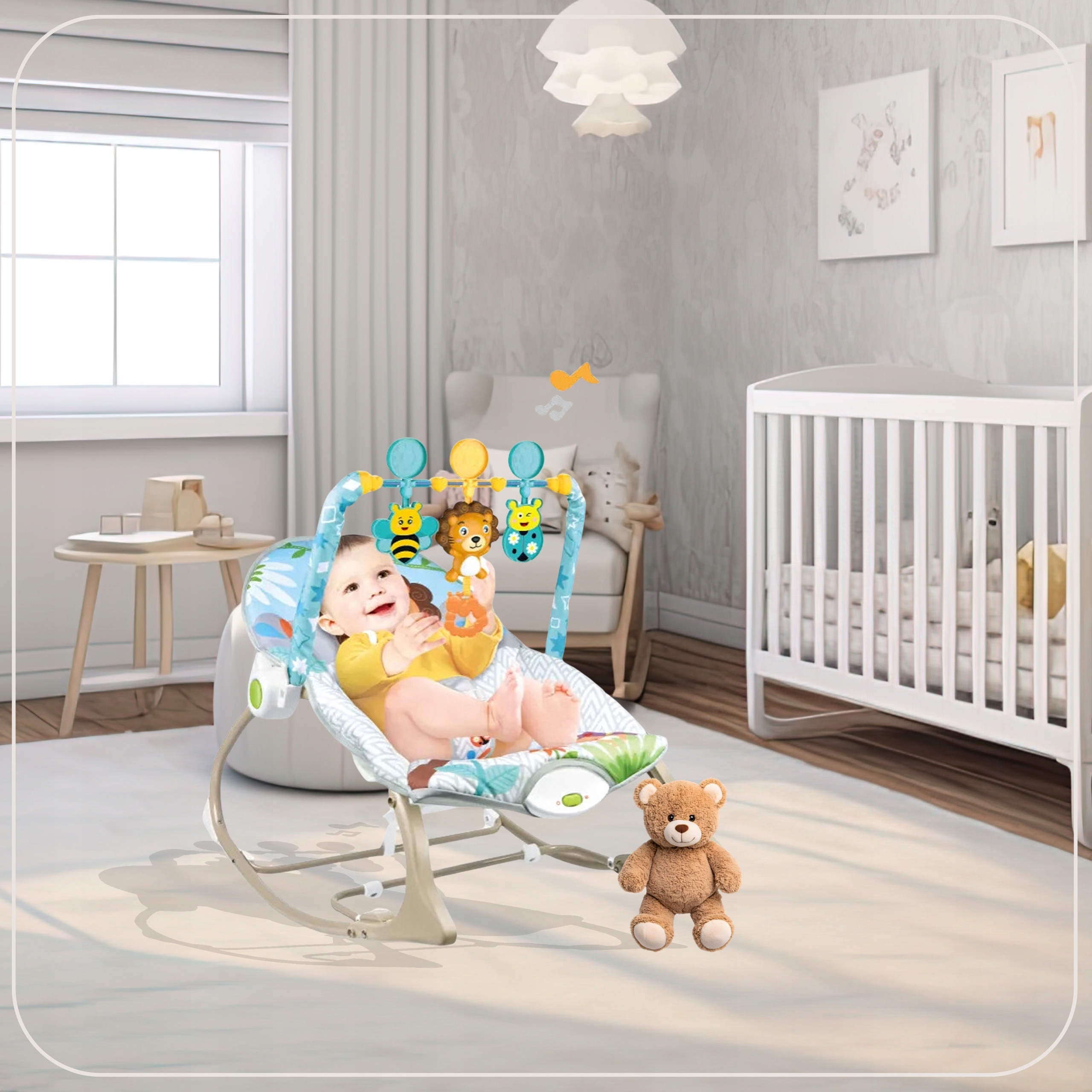 Шезлонг-качалка 3в1 с регулируемой вибрацией и музыкальными ремнями