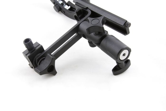 Держатель позволяет использовать любую системную лампу, со стандартным горячим башмаком ISO, любыми аксессуарами (софтбоксами, форсунками и т. д.) с креплением Bowens.