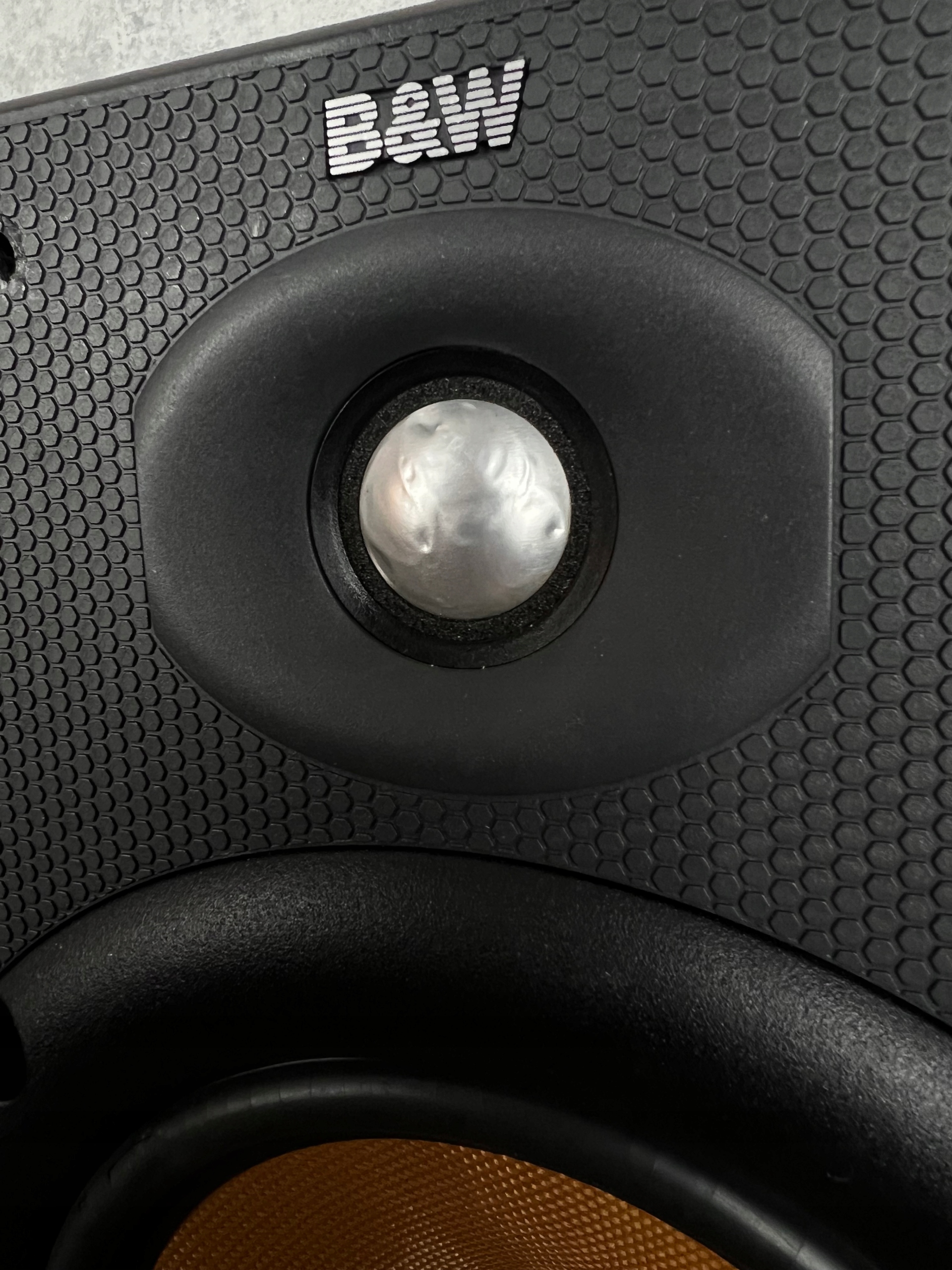 для продажи пара больших мониторов B & W DM602 S2 - культовая модель из серии 600, известная своим сильным пространственным звуком. Несмотря на видимые признаки износа, колонны все еще играют и могут быть хорошей базой для ремонта или временного использования.