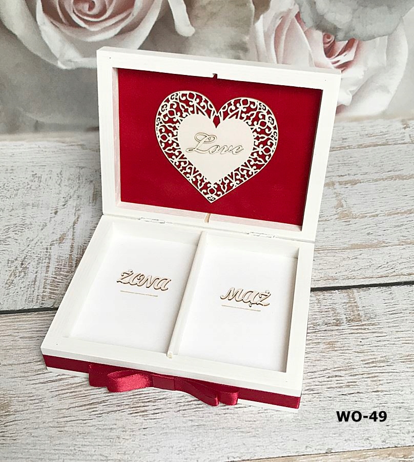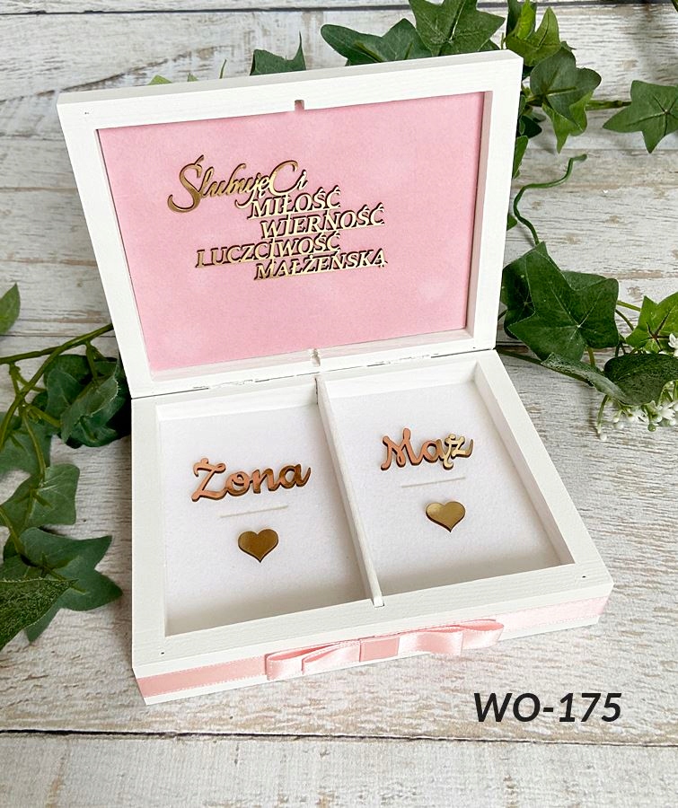 коробка для обручальных колец, сделанных из дерева, окрашенного белого