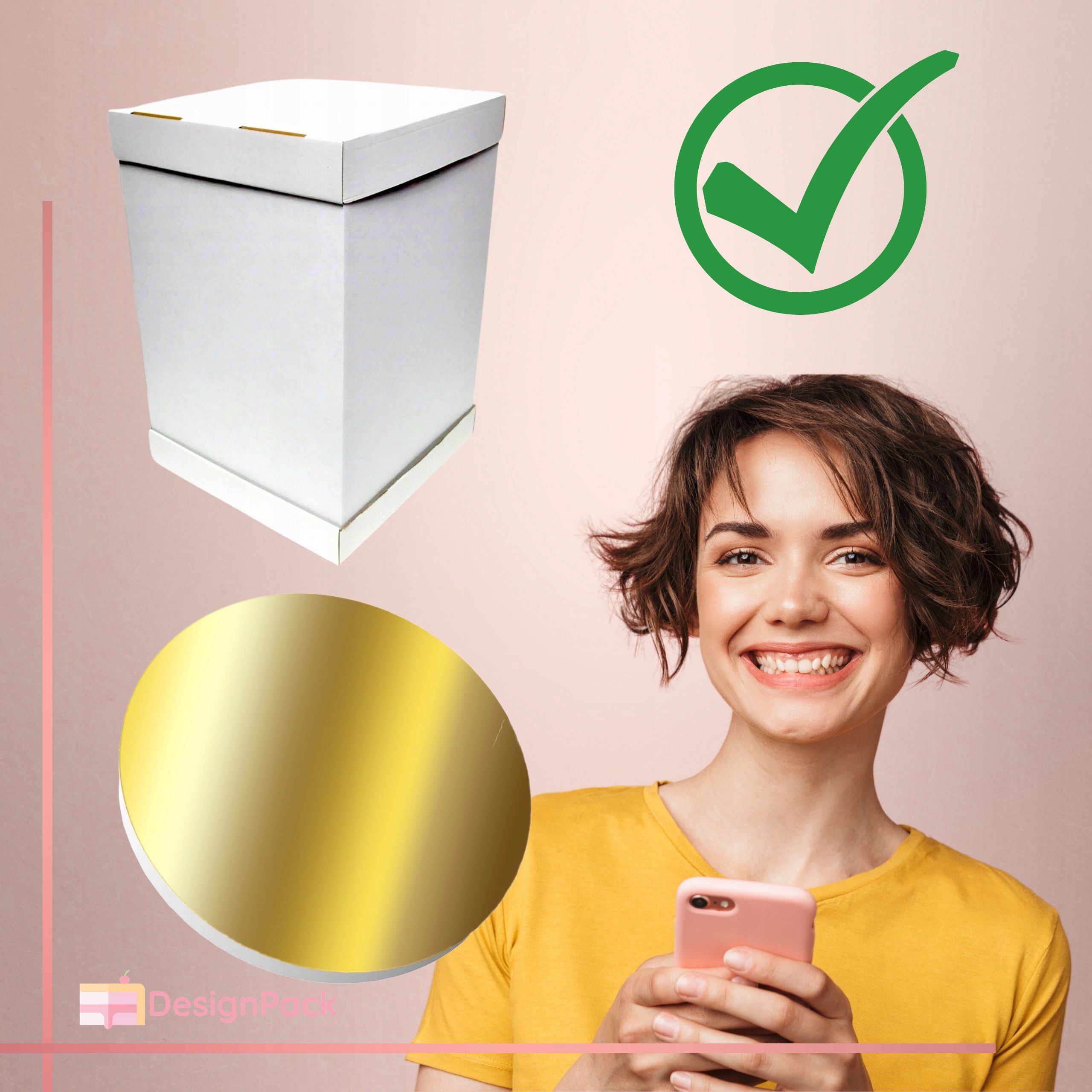 коробка торта 31x31x45 + торт для торта 30 см золотой стиродур причастие h1>