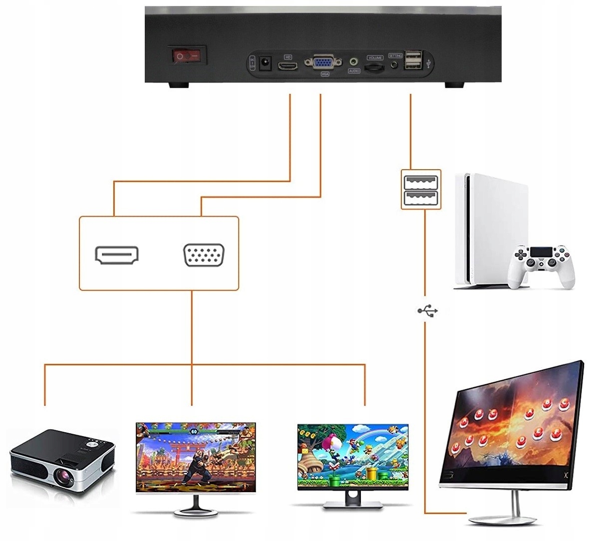✅ Подключите консоль с любым монитором, телевизором, проектором, компьютером и т. Д. Многие.