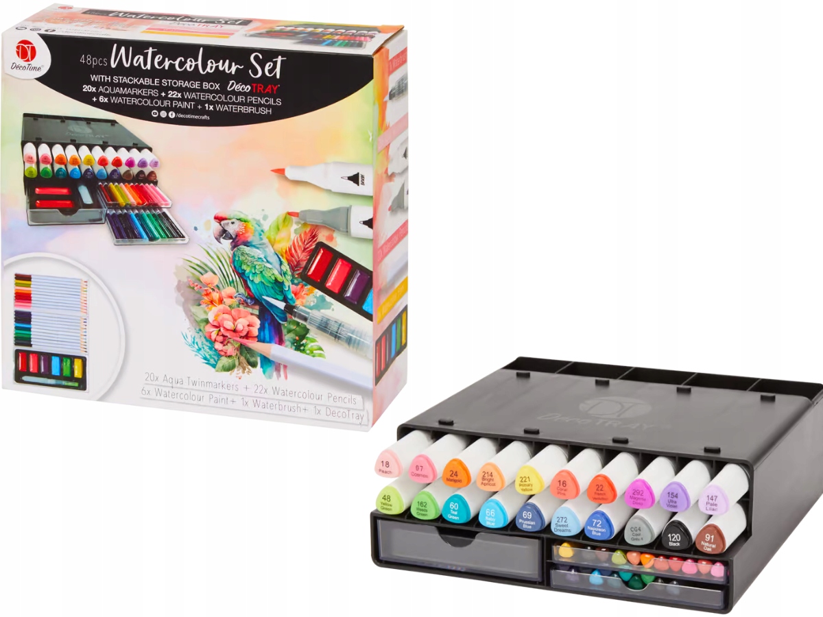 BOX zestaw AKWARELI Markery AKWARELOWE PODWÓJNE KREDKI FARBY waterbrush 48