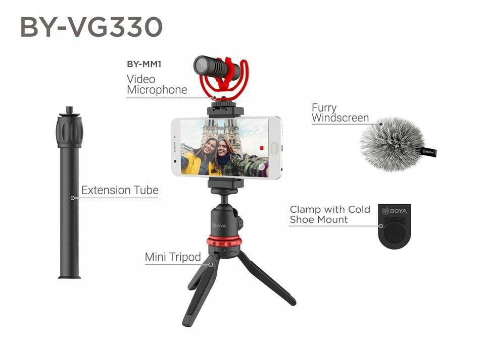 BOYA BY-VG330 — универсальный видеонабор для смартфонов. Легкий и компактный дизайн, очень удобный для записи в помещении или на улице.
