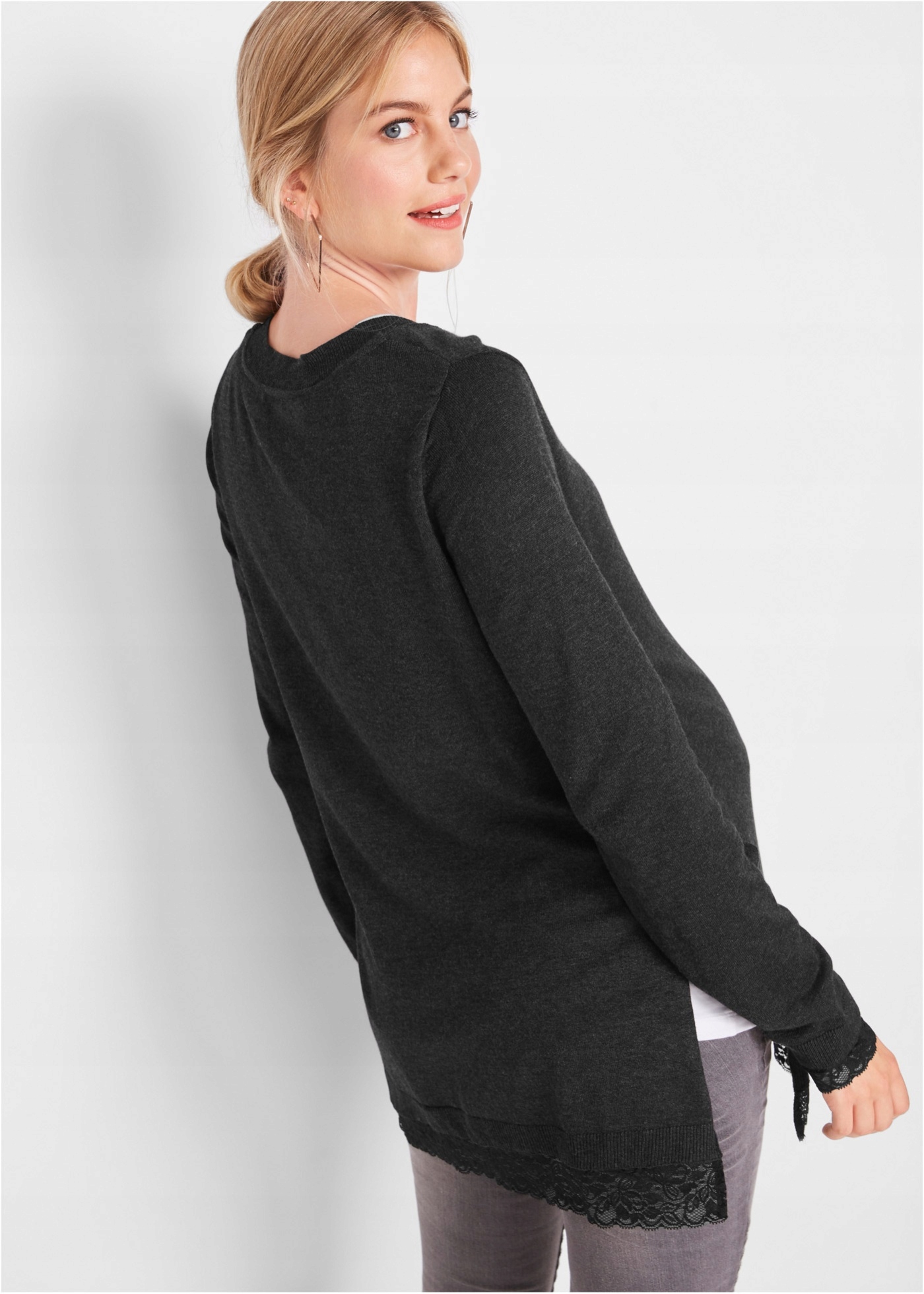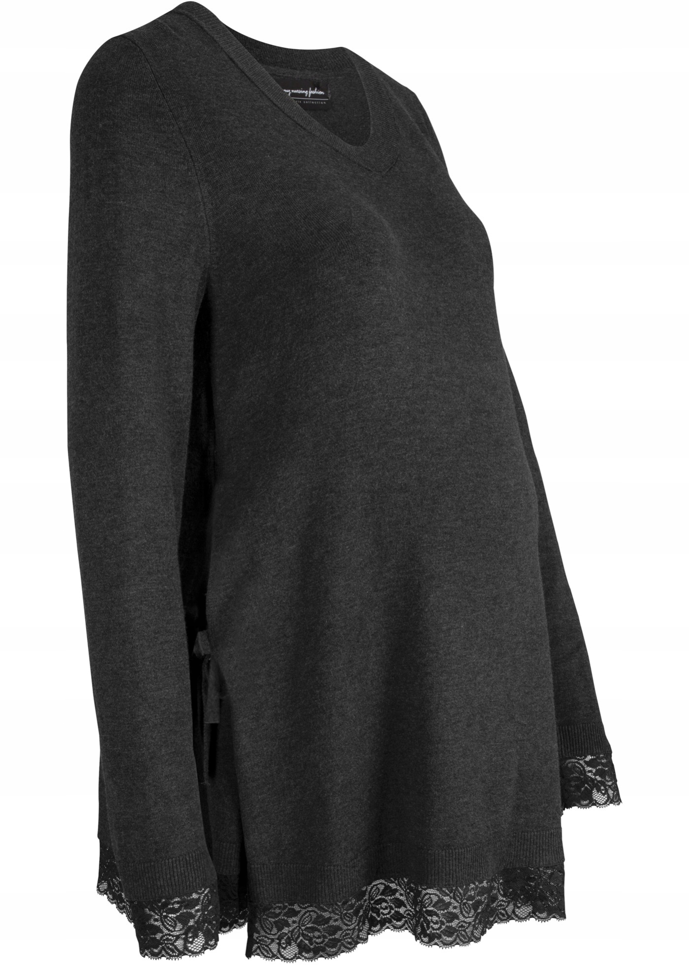 Свитер для беременных с практичными завязками по бокам для кормления грудью. Выглядит красиво.