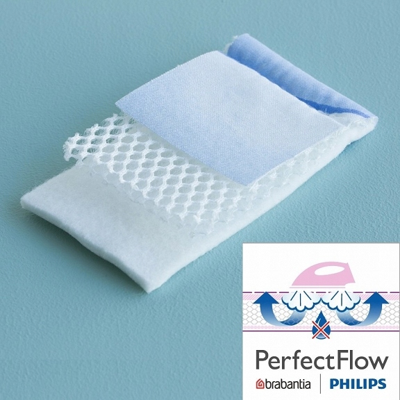 Система PerfectFlow гарантирует усиленное испарение во время глажки. Благодаря системе не скапливается пар и во время глажки на пол не попадают случайные капли воды.