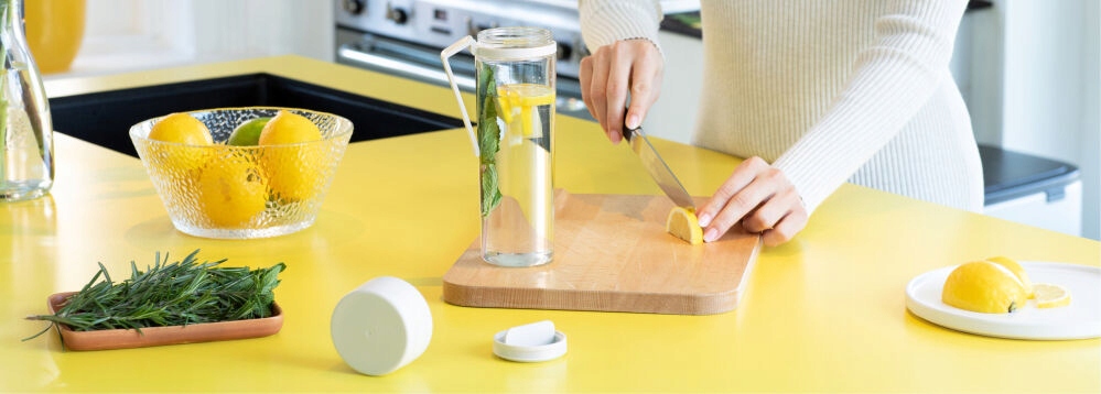 Если вам придется выйти из дома, бутылка для фильтрованной воды Make & Take от Brabantia позволит вам не только освежиться вкусной ароматной водой, но и приготовить ее самостоятельно. Фрукты, которые вы положили в бутылку, останутся в ней благодаря интеллектуальному ситечку, расположенному под носиком.