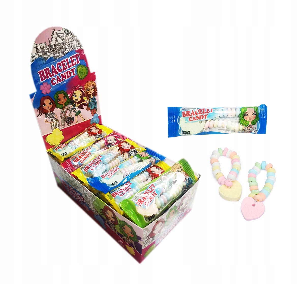 Очень вкусные конфеты с порошком в форме браслета. Каждый браслет состоит из маленьких конфет-пудры разных цветов и вкусов и одной большой конфеты-пудры. Идеальный перекус для каждой маленькой и большой леди!