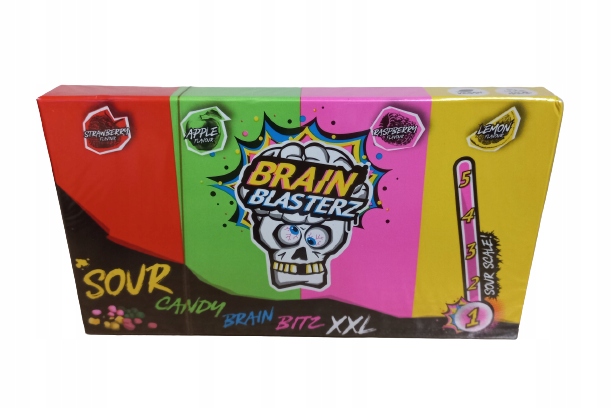 Brain Blasterz Sour Candy Brain Bitz Mix XXL 144г - Маленькие конфеты с кисловатым вкусом яблока и клубники, а также лимона и малины
