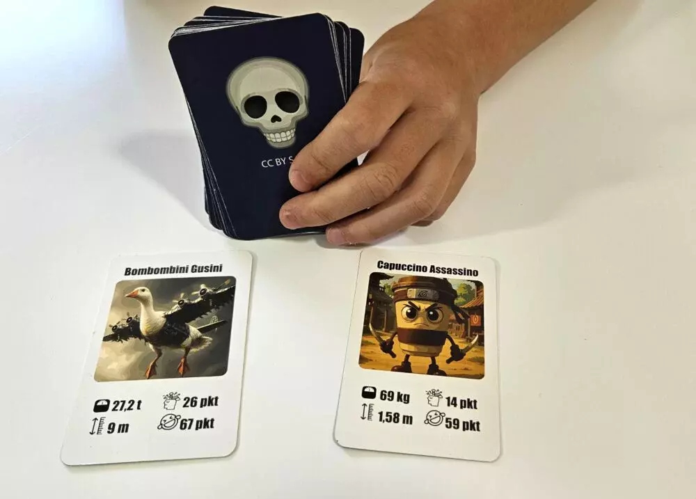 Family Card Game Brainrot Zadymka - карточная игра, которая разбивает систему! Интернет -вирусный итальянский Brainrot теперь в игровой версии с командой! Вам нравится быстрая, забавная и совершенно сумасшедшая игра, которая начнет каждый перерыв, дом или вечер с братьями и сестрами? Brainrot: Zadymka - это карточная игра, в которой учитывается умение, моя воспольменная сила и немного абсурда. Вы собираете карты, сравниваете функции и выигрываете, если у вас сильнее ... или более сумасшедших персонажей, чем остальные! Как это работает? У каждого игрока есть куча покрытых карт. На картах вы найдете культовых персонажей итальянского мозга, таких как Tung Tung Tung Sahur, Tralalero Tralala, Brr Brr Patapim, Droulimer Trulicina, Callerina Cappuccin и многие другие. У каждого из персонажей есть свои сильные стороны, такие как: вес, рост, мемциальная (потенциал на мем) и абстрактность. Веселье включает в себя битву между персонажами. В каждом раунде игроки выкладывают карты, а стартовый игрок указывает, какой из параметров будет тот, кто решит выиграть. Тот, кто имеет самый высокий результат, снимает все за столом. И поэтому кто -то завершает всю талию ... или останется последним с картами в руке.