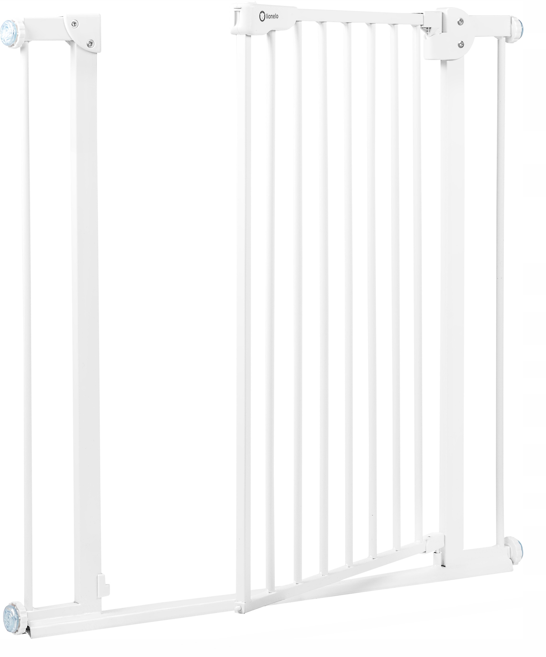 Универсальные размеры – широкий диапазон от 75 до 85 см подходит большинству. стандартные дверные коробки. Специальная накладка позволяет удлинить барьер до 105 см. После добавления дополнительной пристройки ворота также можно использовать для защиты лестницы.