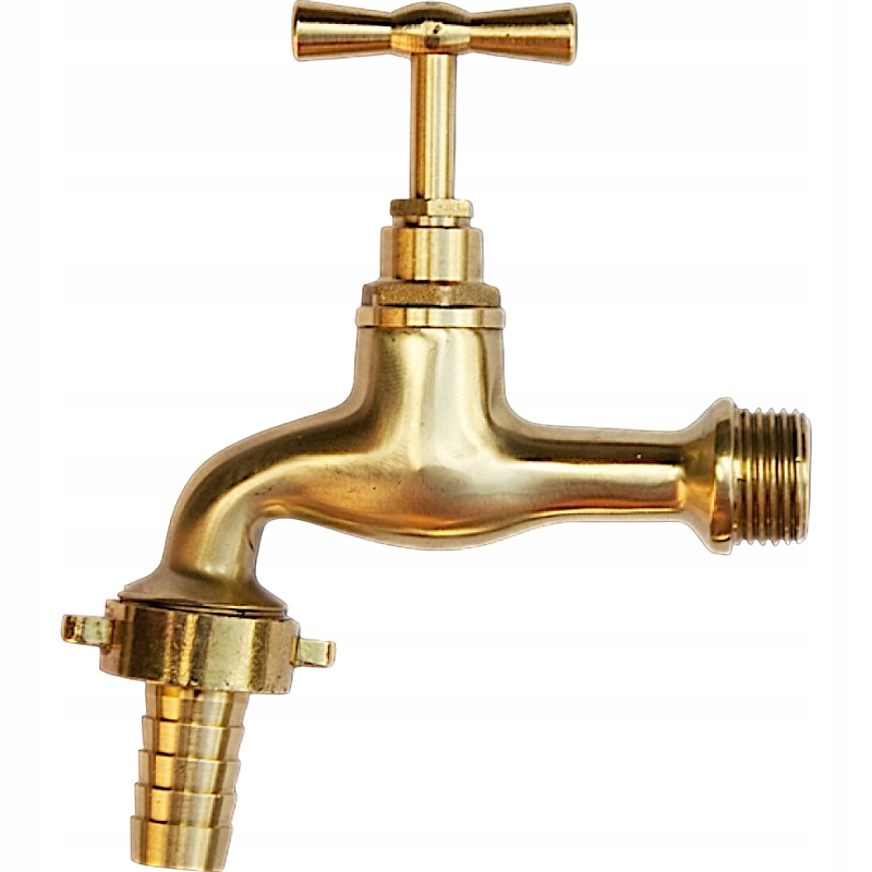 латунный кран для прикрепления снаружи, а также в коммунальном зале; Продукт, устойчивый к погодным условиям и коррозии. Имеет монтажную нить с диаметром 1/2 ", 3/4" конечной нити, на которой снимается подключение к рождественской елке, чтобы напрямую соединить садовый шланг с диаметром 12,5 мм. 1/2 "
