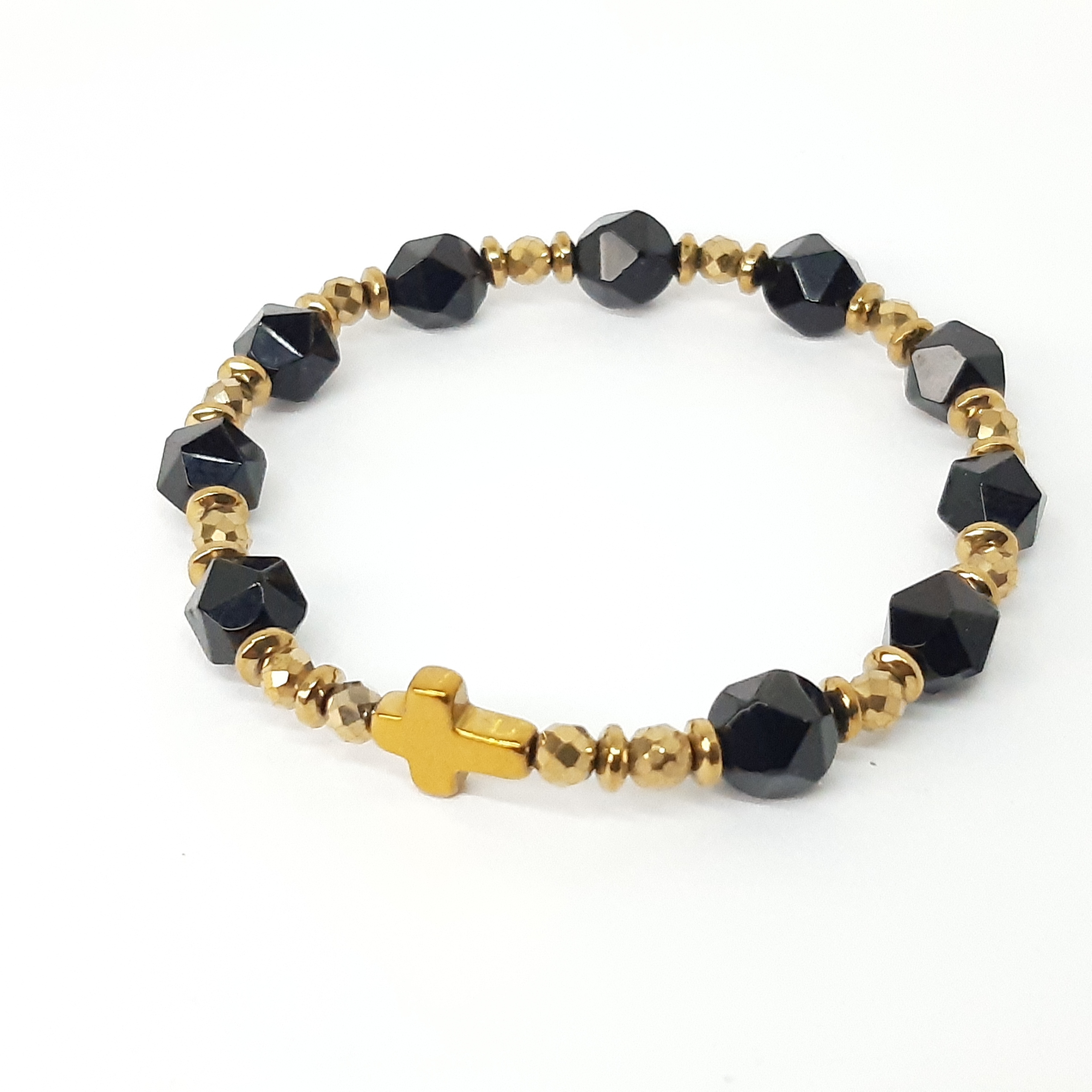 Bransoletka różaniec kamień Onyks + cytat z Biblii Bierzmowanie Urodziny