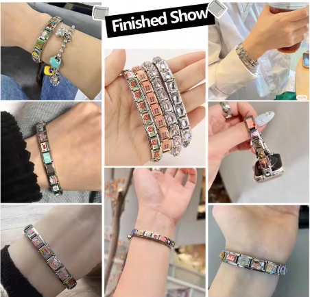 ИТАЛЬЯНСКИЙ МОДУЛЬ-БРАСЛЕТ 9ММ СЕРЕБРЯНЫЙ, НЕРЖАВЕЮЩАЯ СТАЛЬ