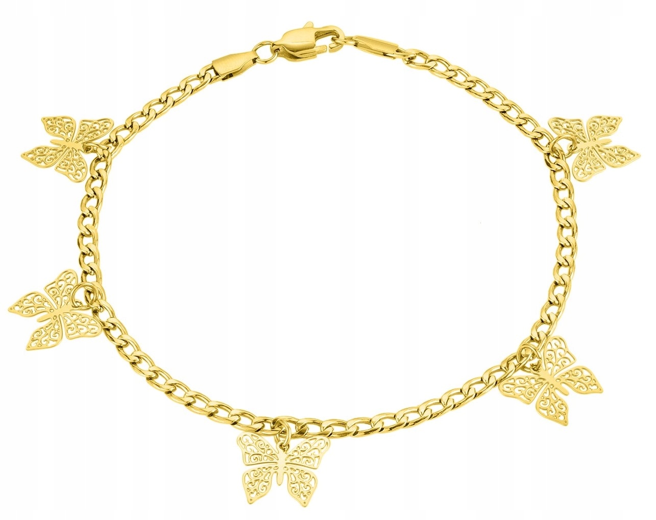 BRANSOLETKA ZŁOTA NA NOGĘ KOSTKĘ STOPĘ MOTYLKI STAL SZLACHETNA 316L