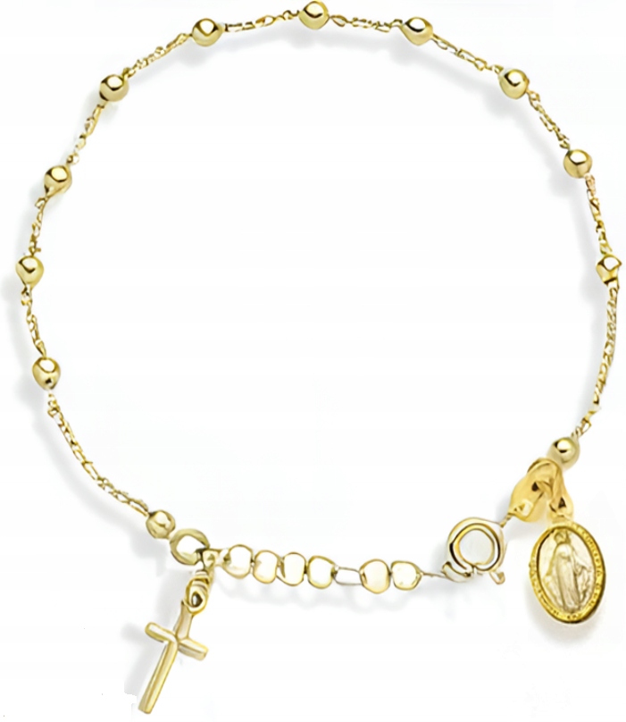 Bransoletka Złota na Rękę Srebro 925 Różaniec na Komunię 21cm