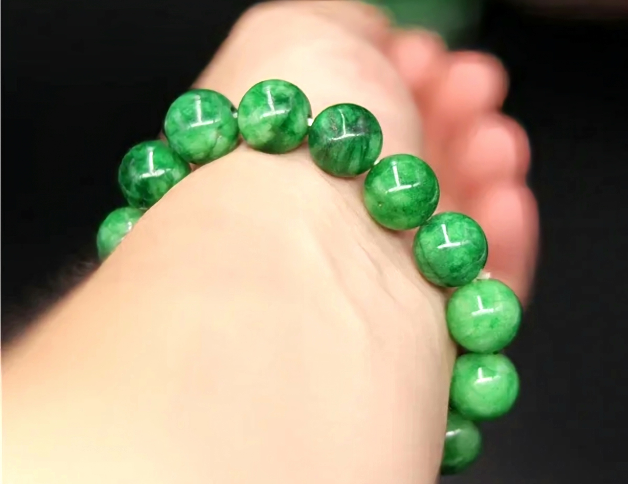 Браслеты выполнены из камней круглой огранки диаметром 8 мм, длина браслета около 19-20 см на резинке.