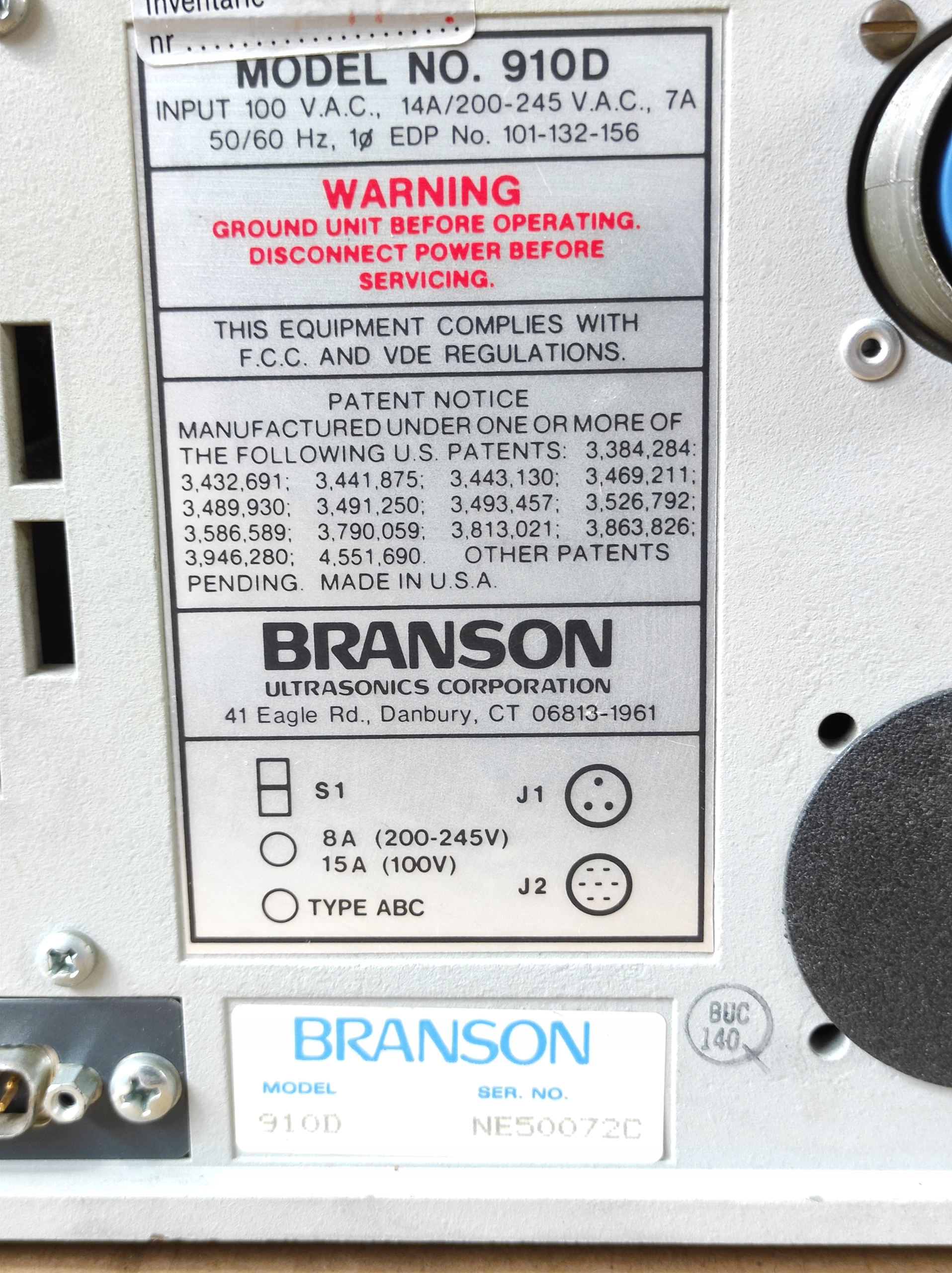 Branson 901AE 910D 1000W Ультразвуковая сварочная машина для пластмассы, сделанных в США.
