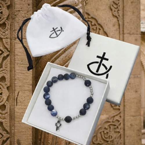 Розарийный браслет из хирургической стали и сосудистых камней